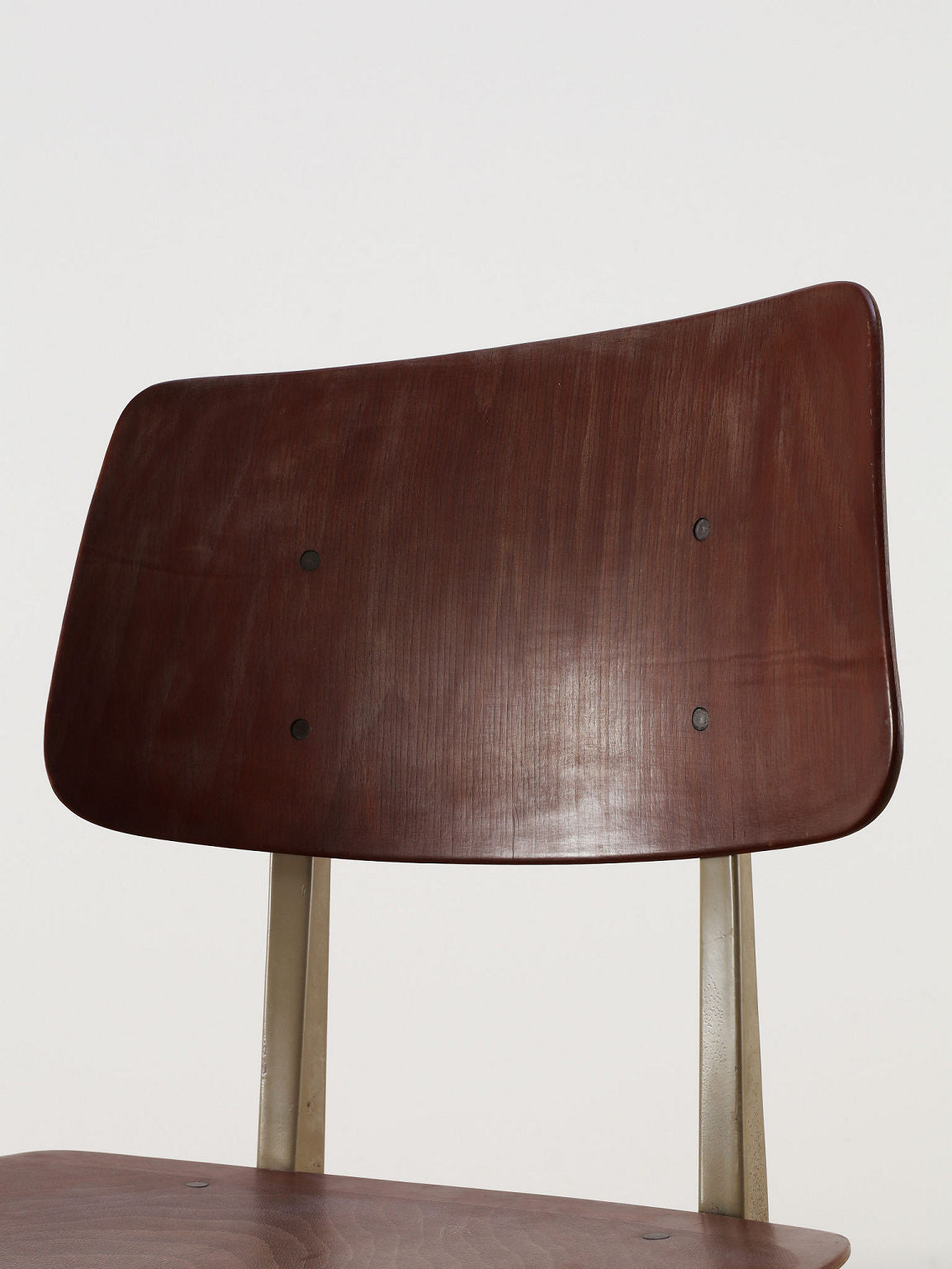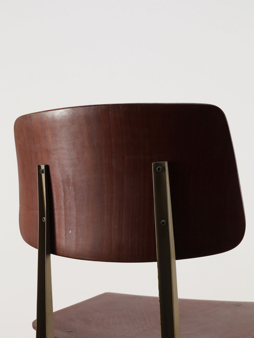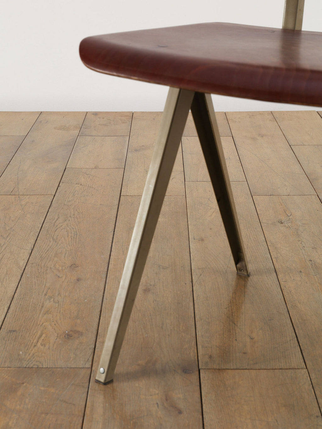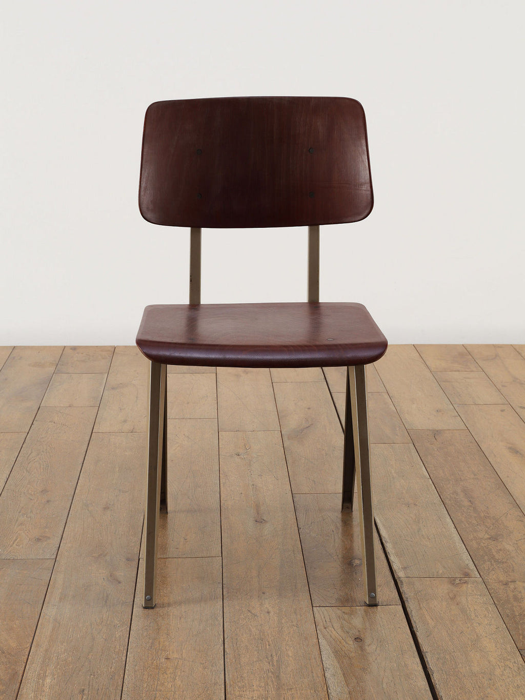 オランダヴィンテージを代表する家具メーカー、GALVANITAS社の実用性とデザイン性を兼ね備えたモデルNo.21のスタッキングチェア。ダークな色味のウッドと、左右対称のコンパス型のブラックメタルフレームの組み合わせが、インダストリアルでクールな雰囲気を演出します。ダイニングチェアとしてはもちろん、ワークデスクに合わせてアトリエのような雰囲気もお愉しみいただけます。スタッキングが可能なので、使わない時は重ねてコンパクトに収納できるのも嬉しいポイントです。
