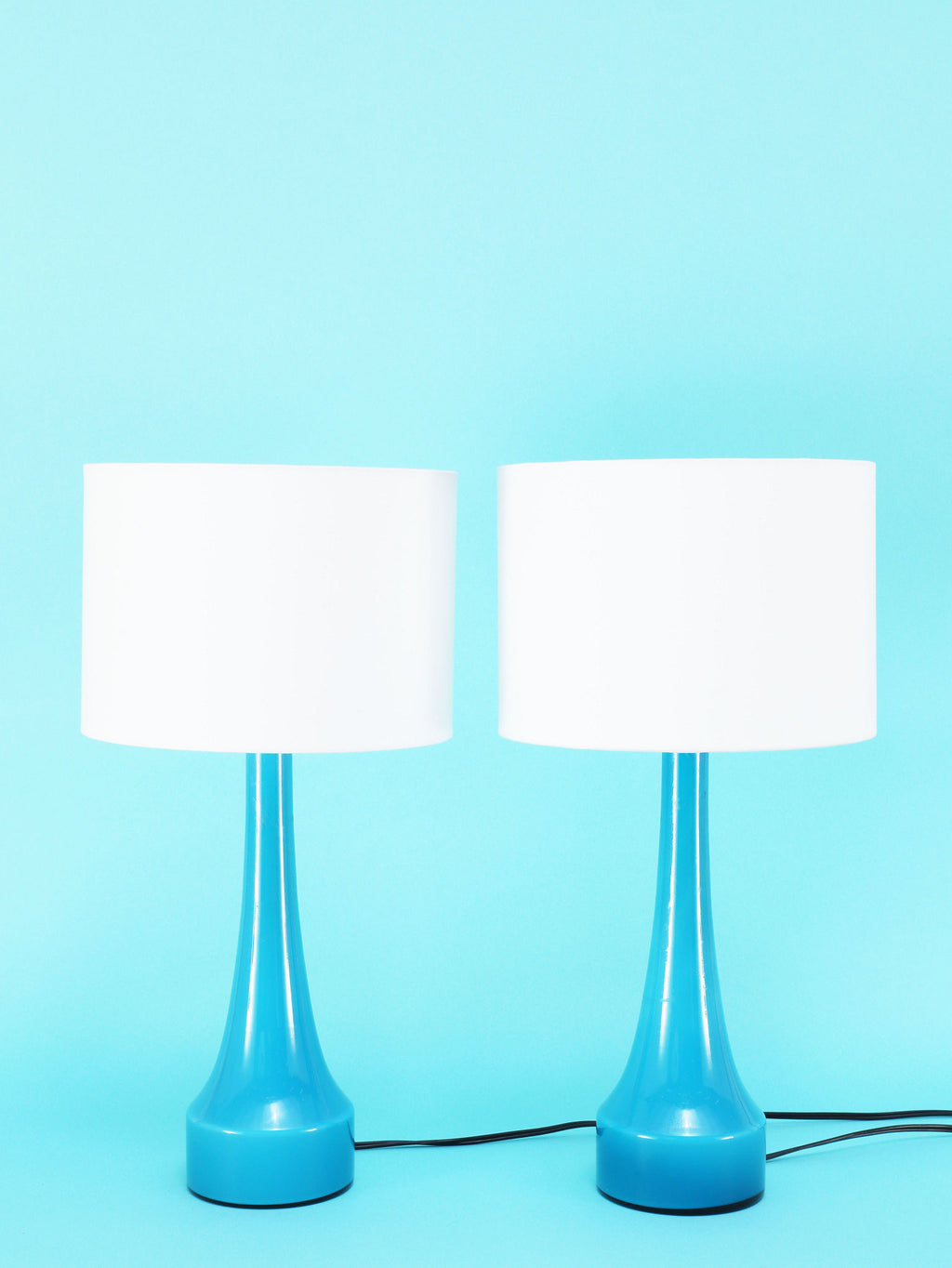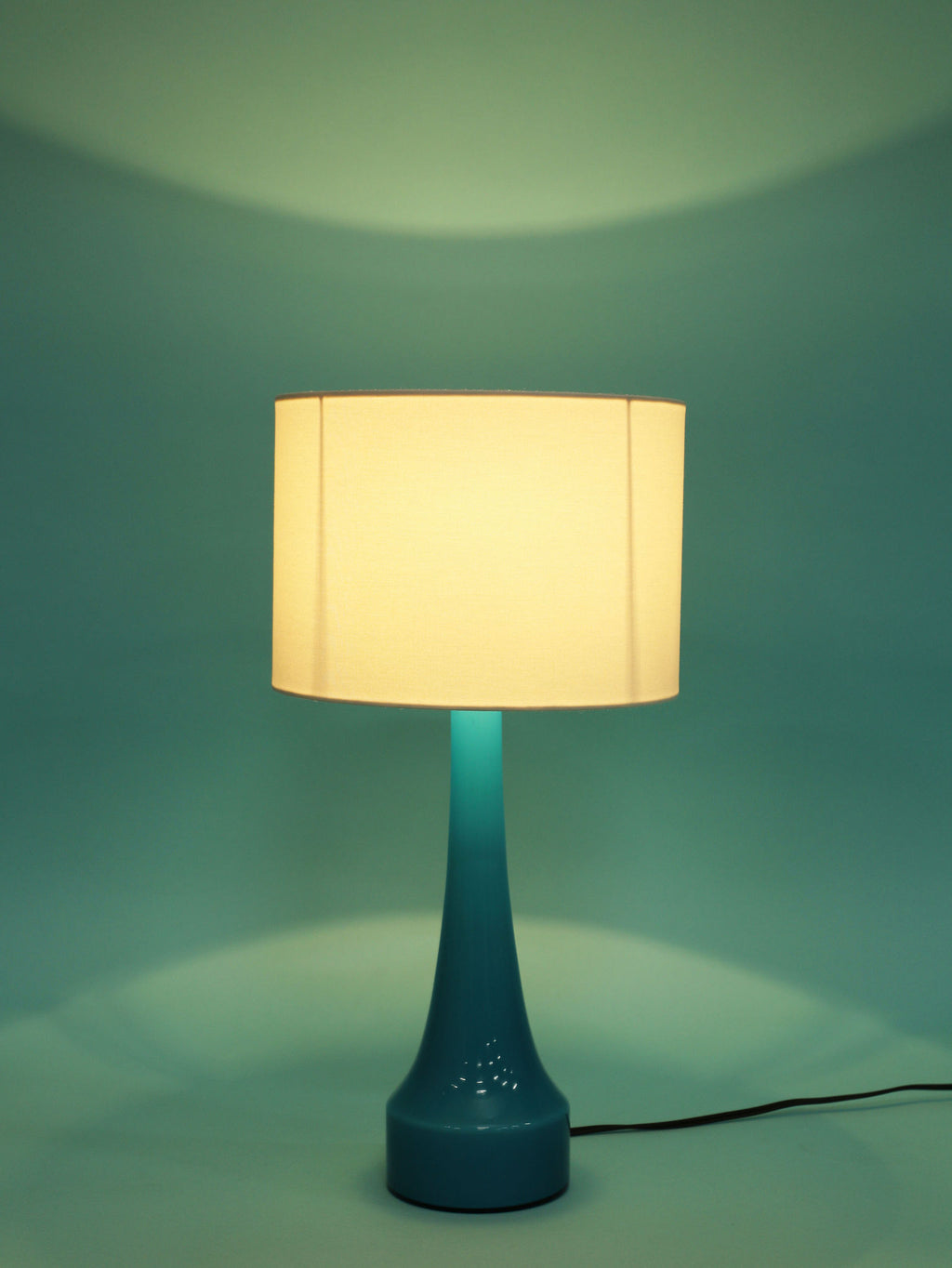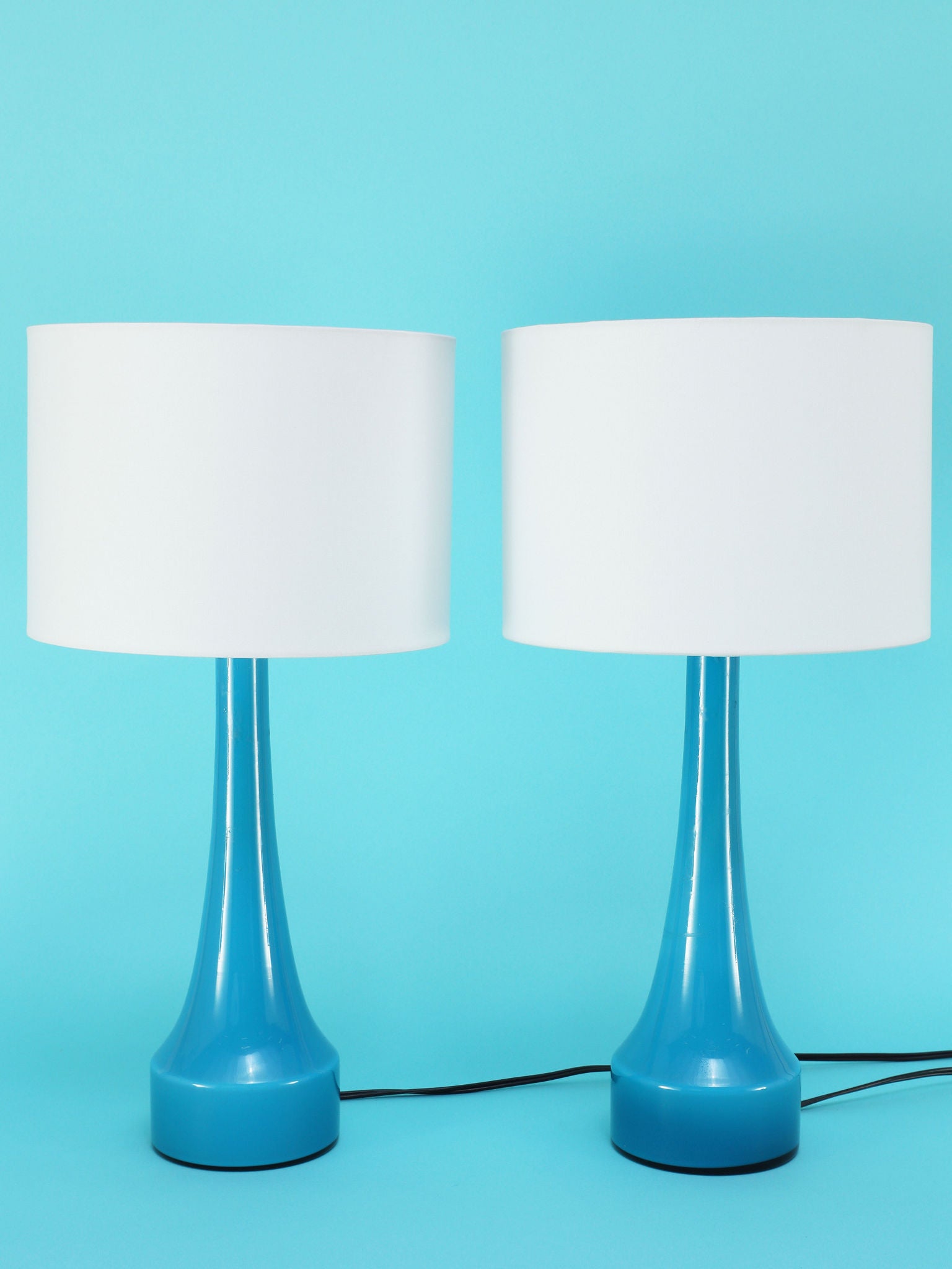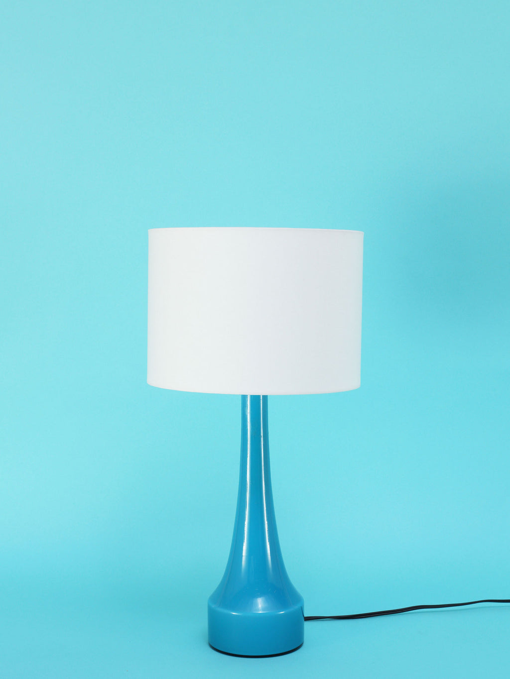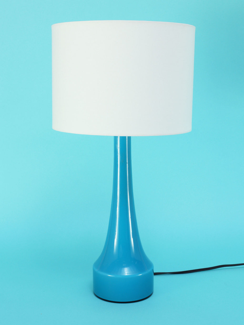 1960年代(推定)にスウェーデンで製造されたBERGBOMS社製のヴィンテージテーブルランプです。光を通すことでさらに鮮やかさを増す、美しいライトブルーのガラスが使用されています。その色彩は、北欧の清澄な空や海を思わせる、心地良い清涼感を空間にもたらします。デザインは無駄のないシンプルなシェイプで構成されており、ミッドセンチュリーモダンらしい機能美とエレガンスが融合しています。ベッドサイドやリビングの両サイドに対で配置することで、空間にシンメトリーな美しさと穏やかなブルーのアクセントが生まれます。
