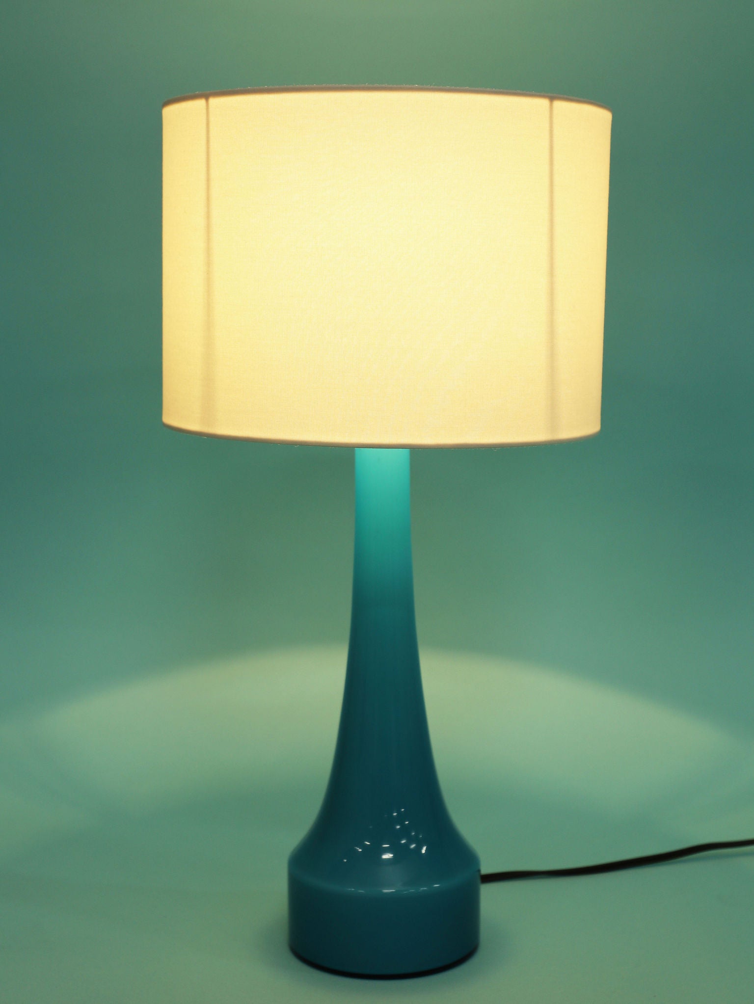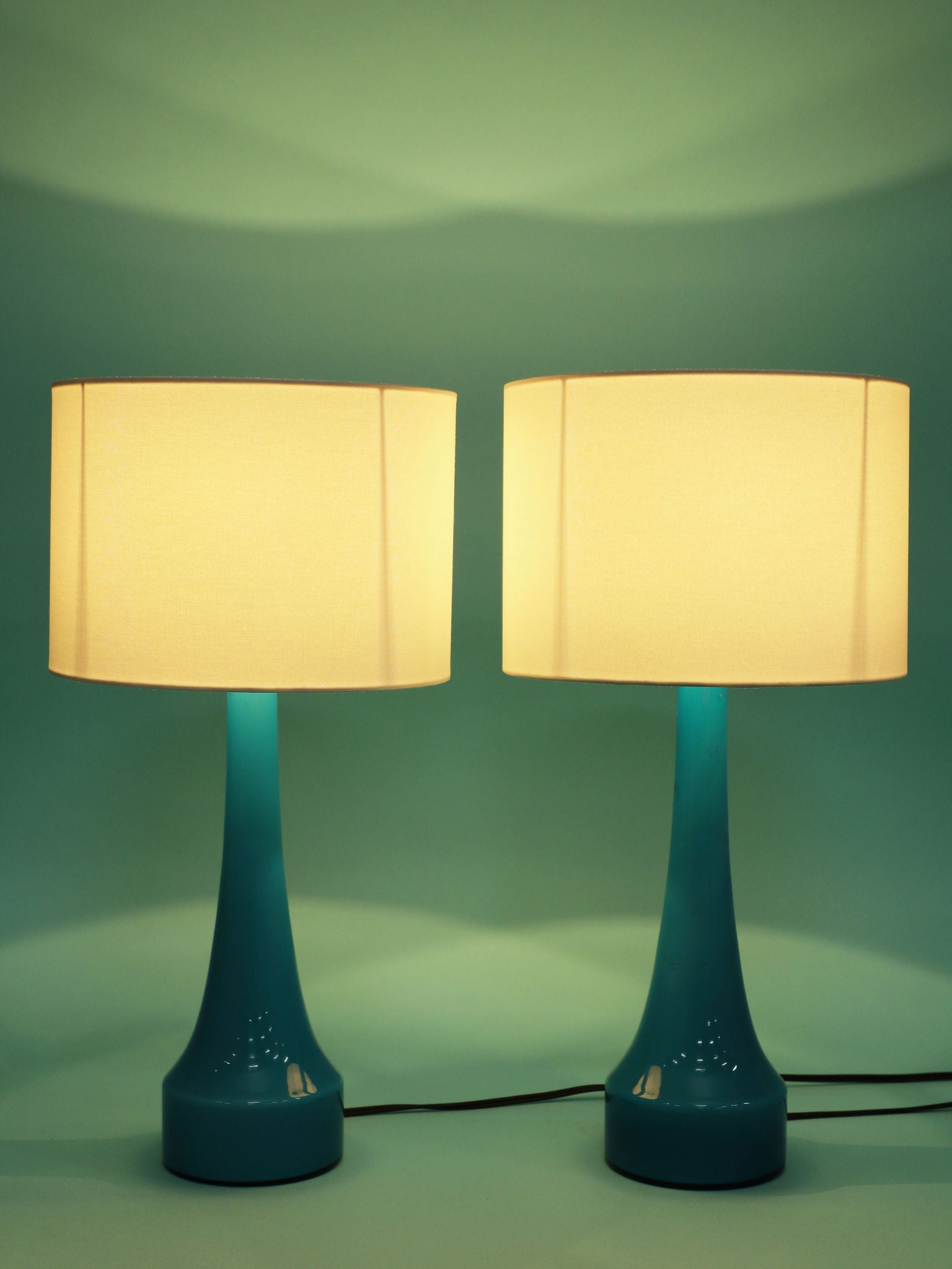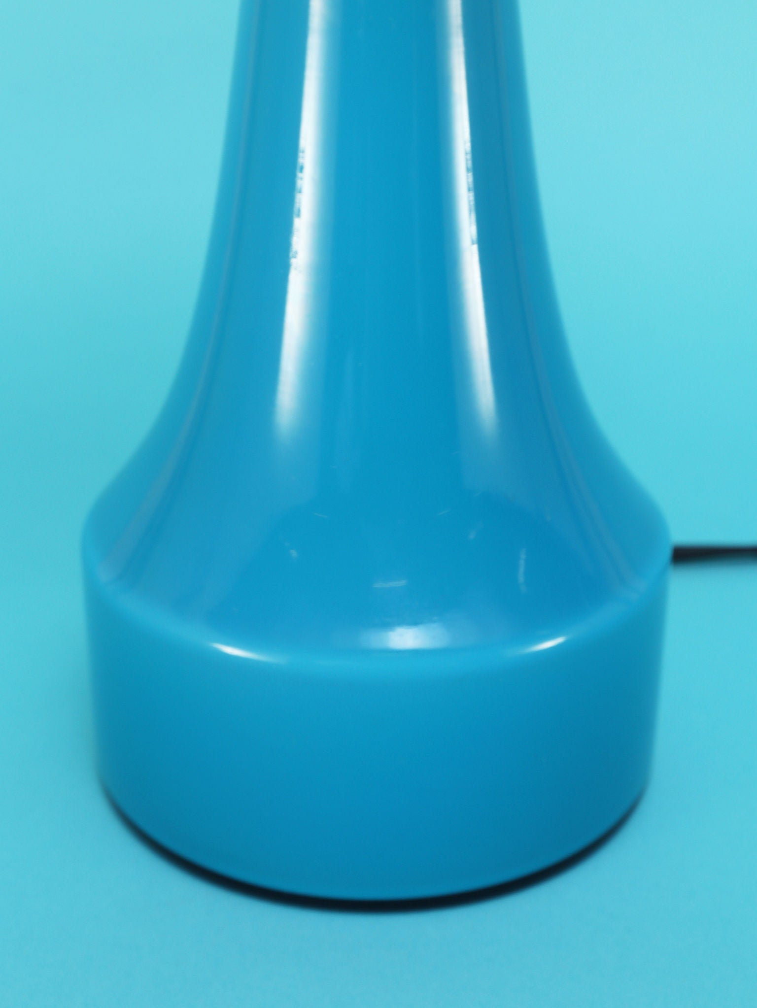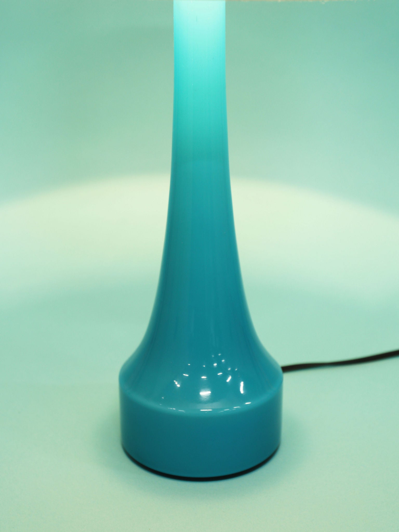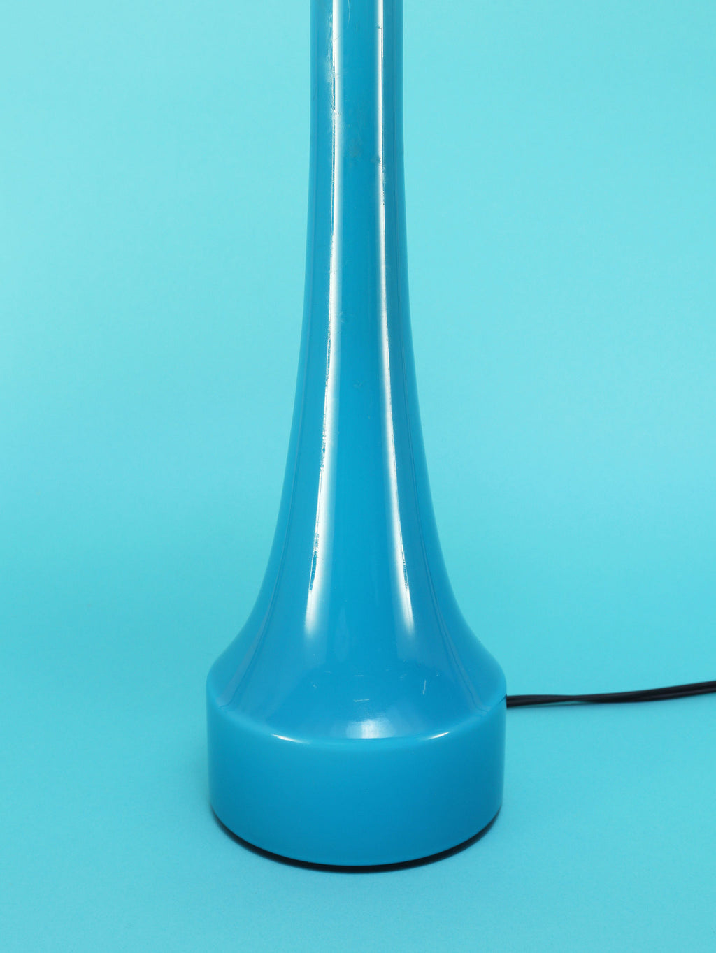 1960年代(推定)にスウェーデンで製造されたBERGBOMS社製のヴィンテージテーブルランプです。光を通すことでさらに鮮やかさを増す、美しいライトブルーのガラスが使用されています。その色彩は、北欧の清澄な空や海を思わせる、心地良い清涼感を空間にもたらします。デザインは無駄のないシンプルなシェイプで構成されており、ミッドセンチュリーモダンらしい機能美とエレガンスが融合しています。ベッドサイドやリビングの両サイドに対で配置することで、空間にシンメトリーな美しさと穏やかなブルーのアクセントが生まれます。
