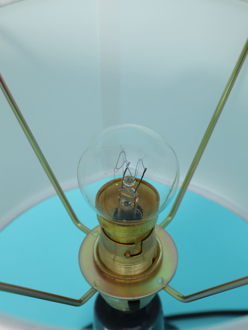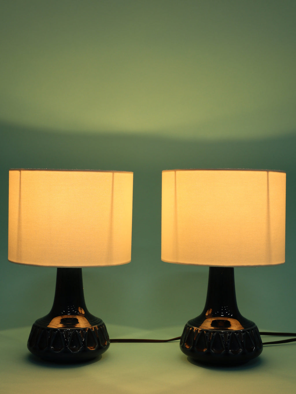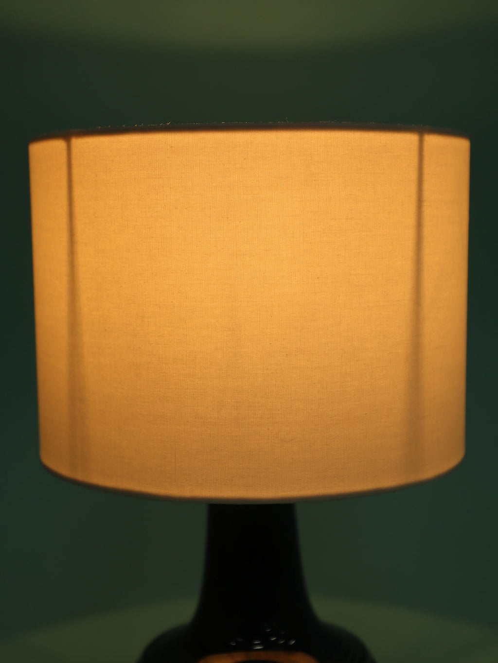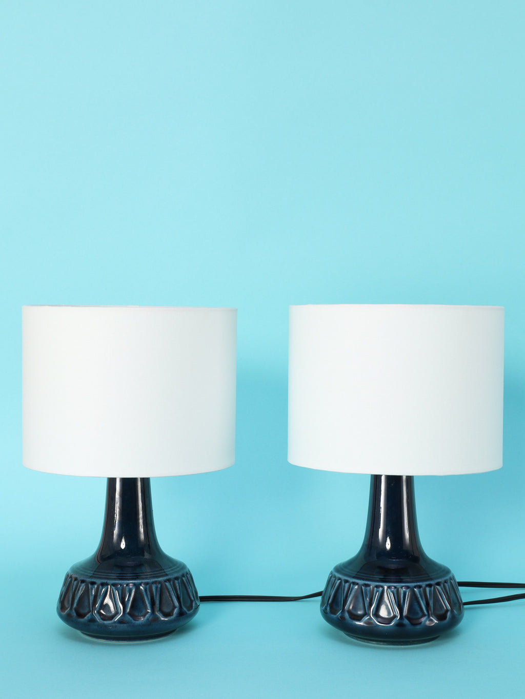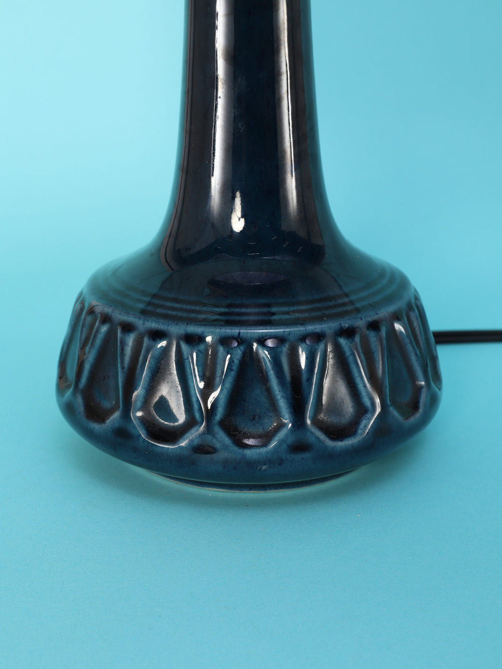 1960年代(推定)ミッドセンチュリー期にデンマークにて製作されたテーブルランプです。この時期、デンマークでは多くの窯元や陶芸家が独創的な陶器製のランプを制作しておりました。特に素朴で温かみのある陶器の素材感が特徴で、年月を経た現代でも多くの人の目を惹くモダンヴィンテージのひとつとなります。深く光沢のあるブルーの鮮やかな発色が唯一無二な存在感を放ち、非常に魅力的なデザインです。