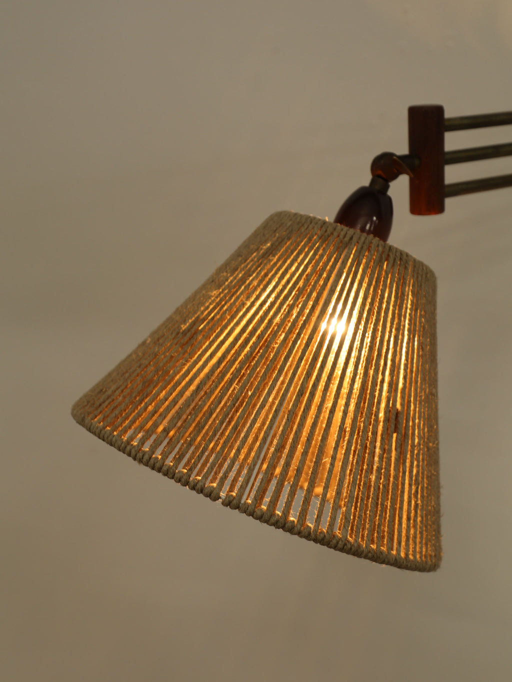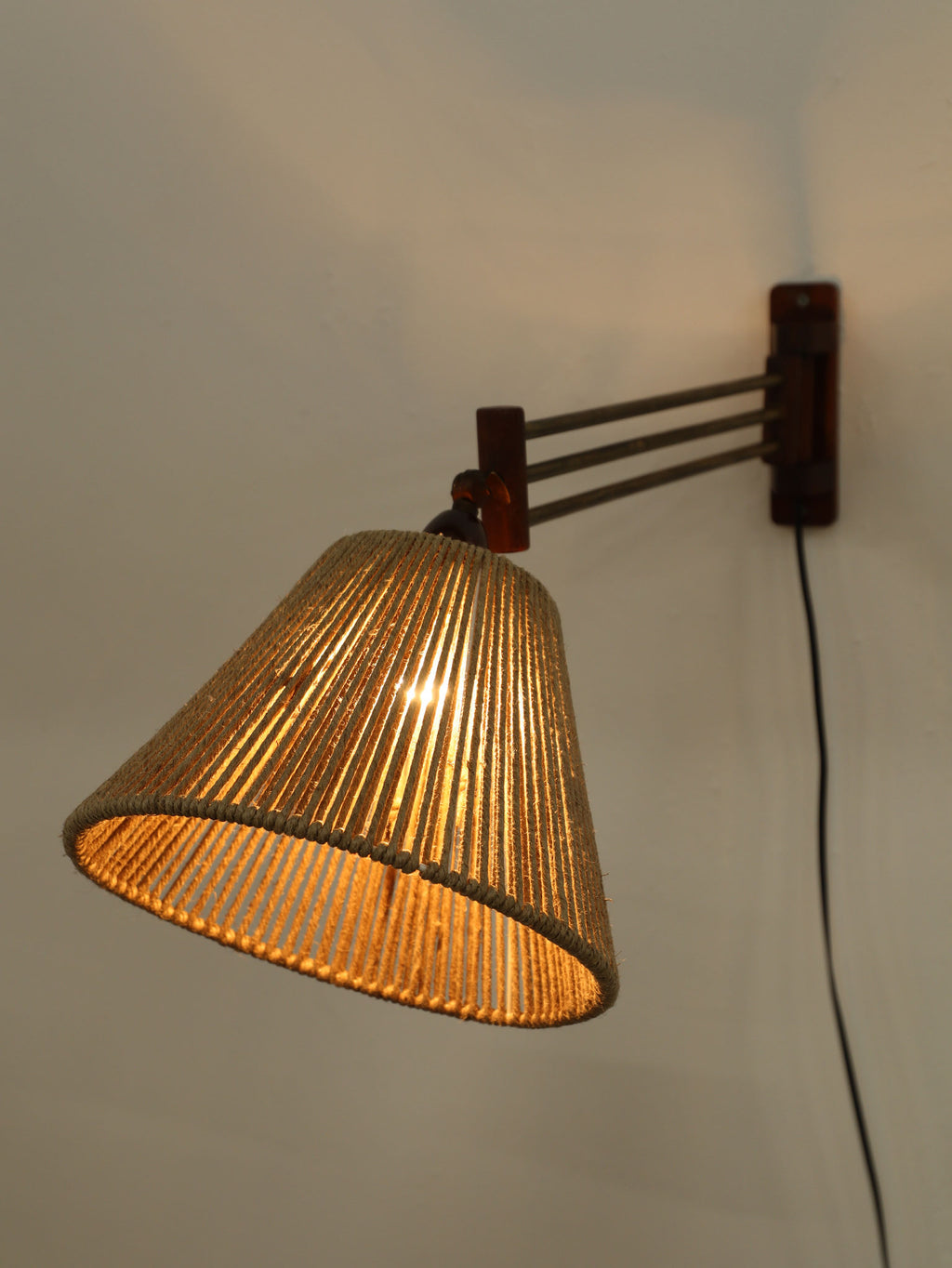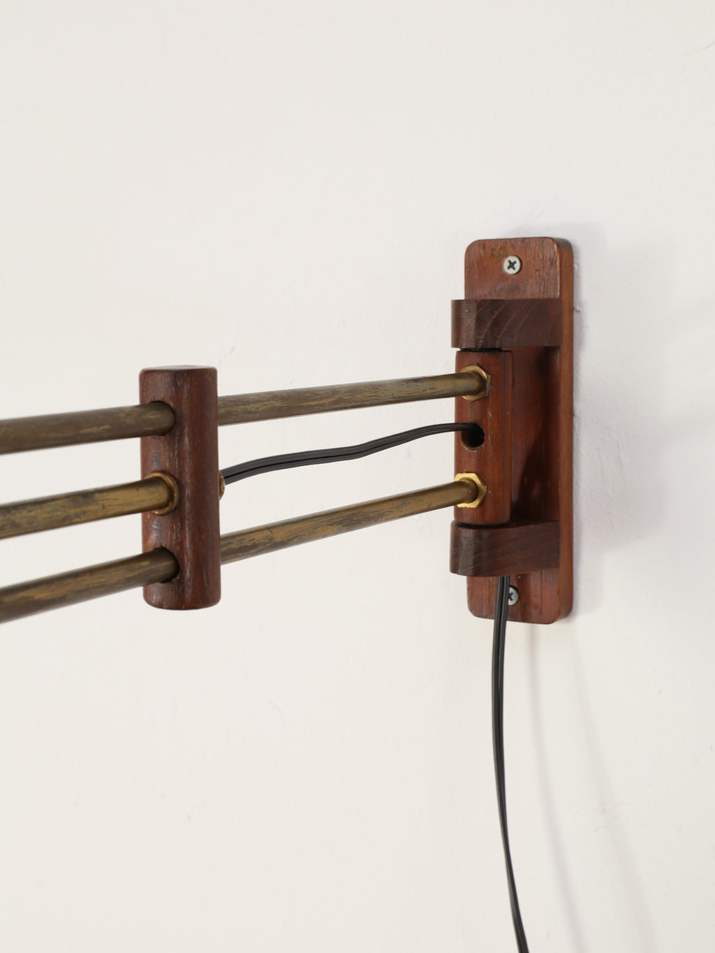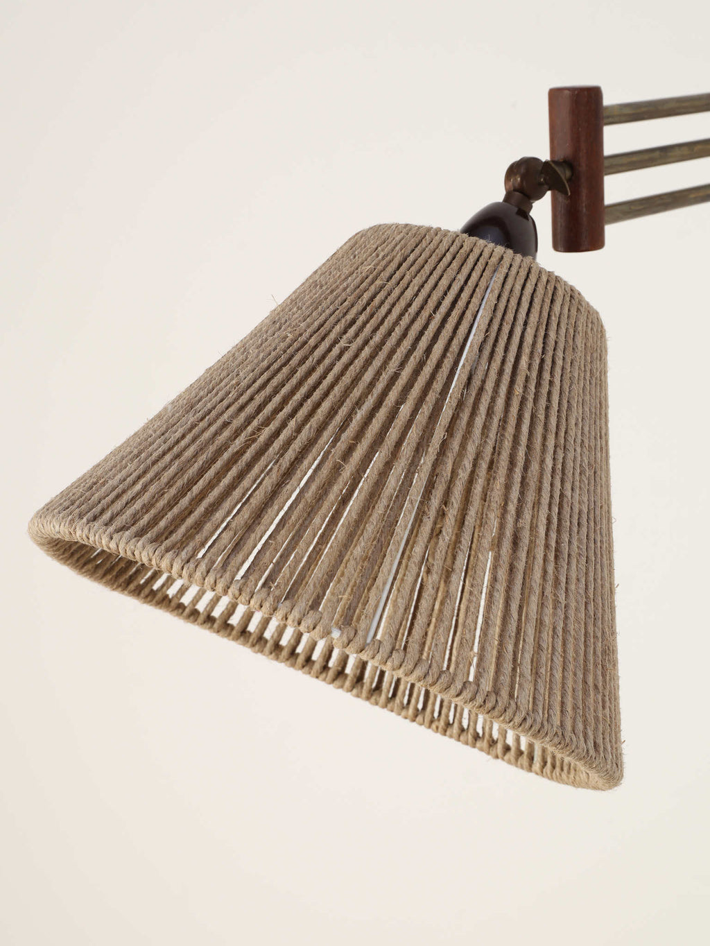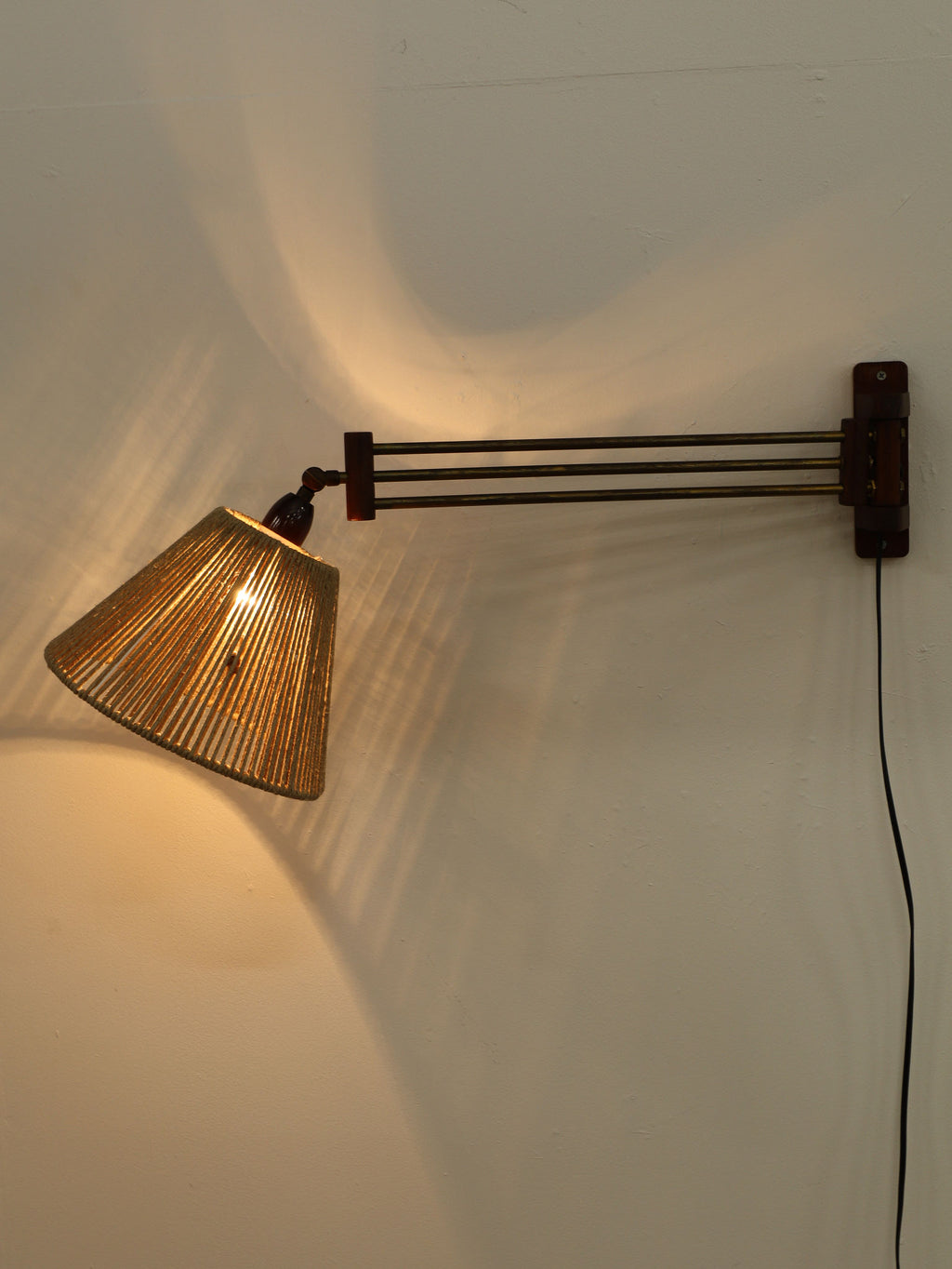 温もりあるチーク材のベース、シャープな輝きを放つ真鍮(ブラス)のアーム。異素材が美しく調和した、ミッドセンチュリーデザインを体現するウォールランプ。シェードからこぼれる柔らかな光は、暖かく安らぎの空間を演出します。長さ調節が可能な実用的なアームは、ソファサイドの読書灯や書斎の間接照明としておすすめです。