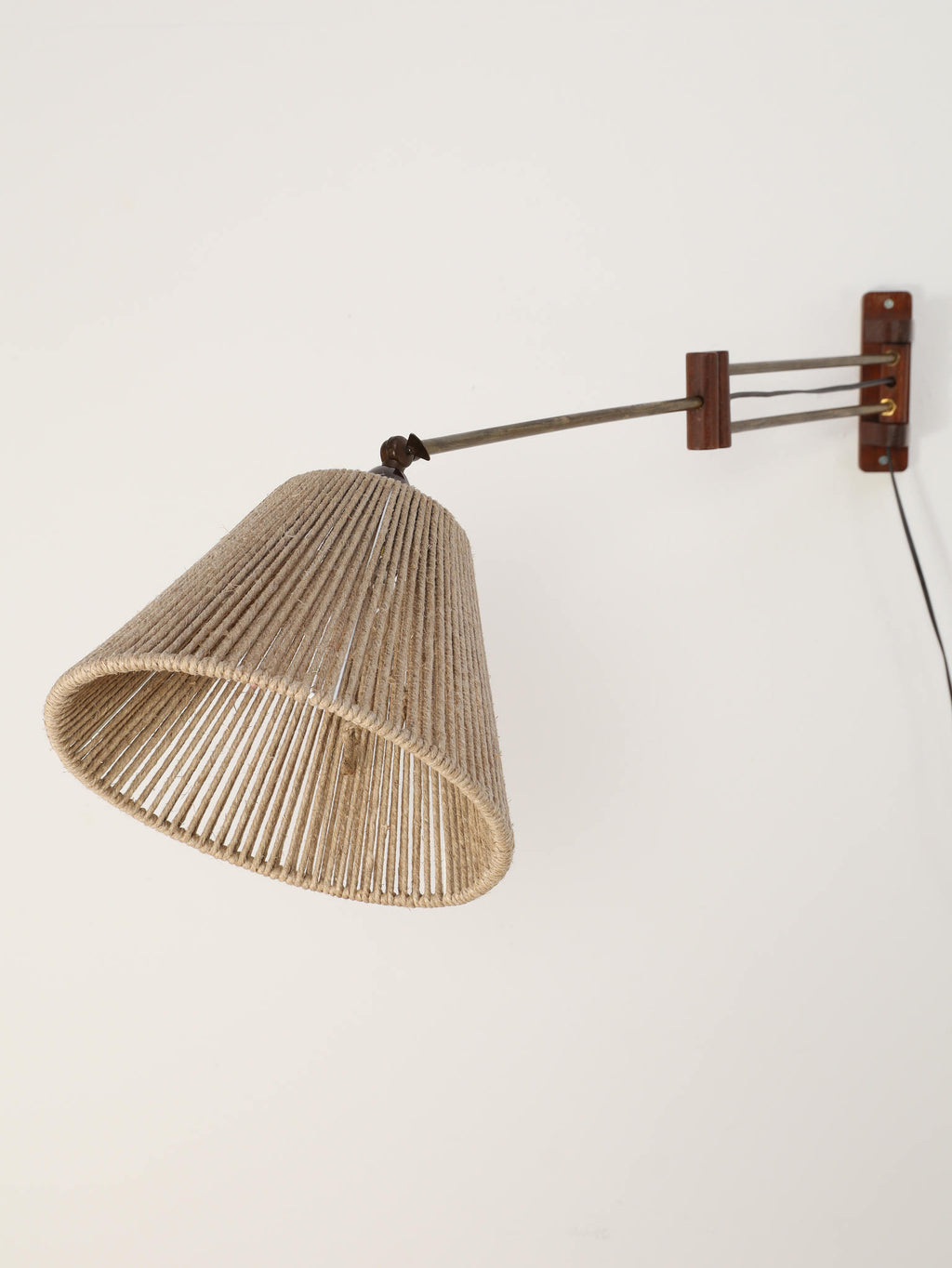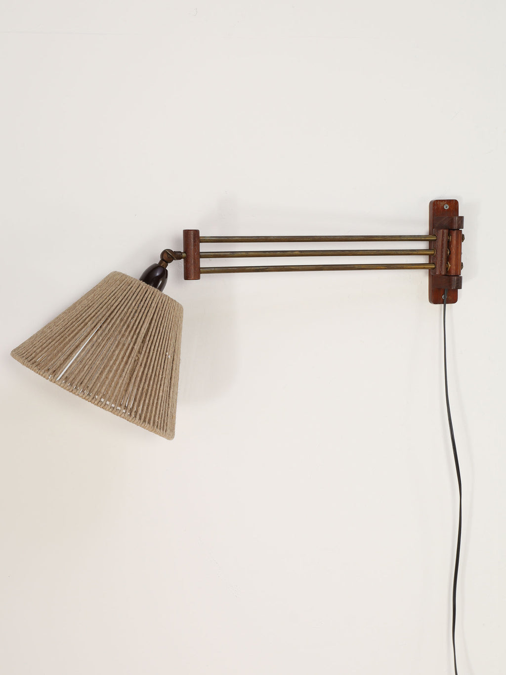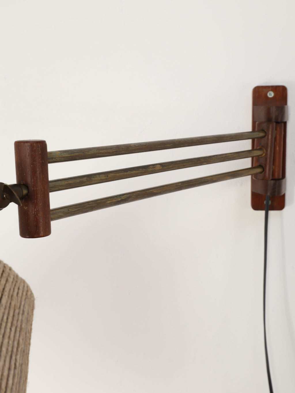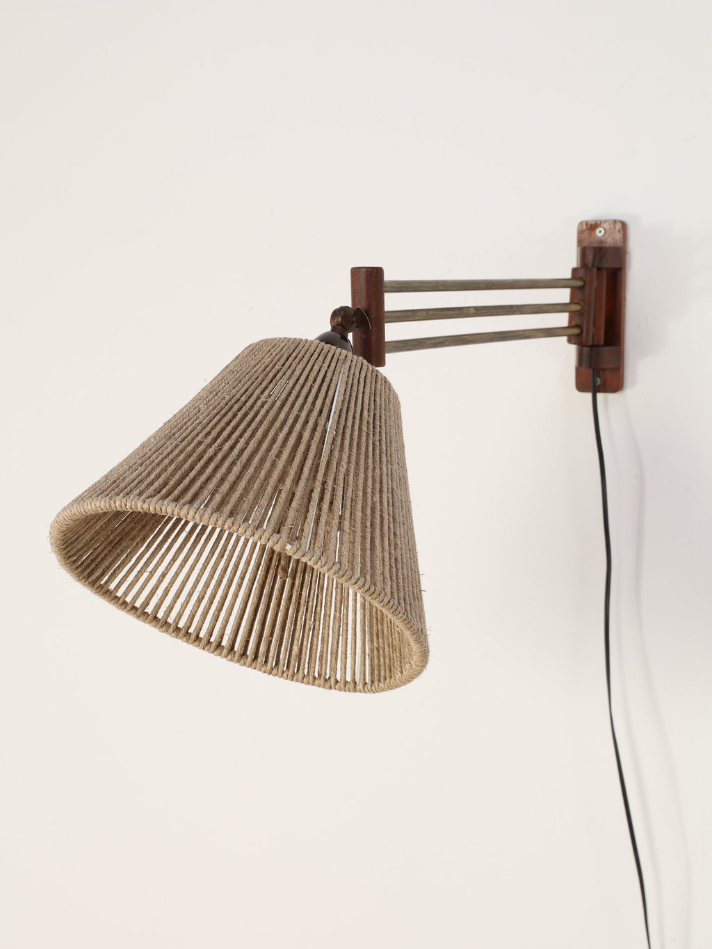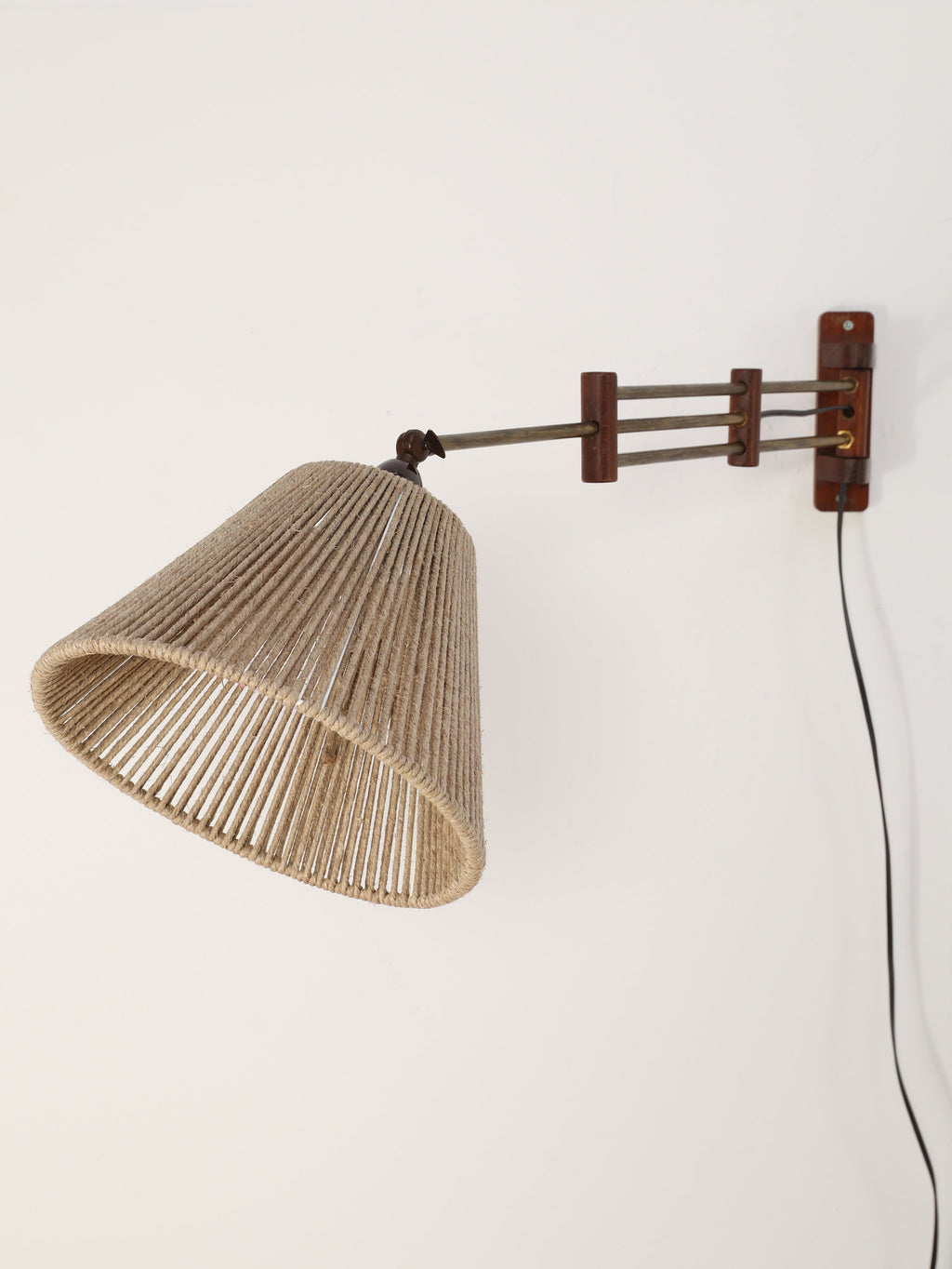 温もりあるチーク材のベース、シャープな輝きを放つ真鍮(ブラス)のアーム。異素材が美しく調和した、ミッドセンチュリーデザインを体現するウォールランプ。シェードからこぼれる柔らかな光は、暖かく安らぎの空間を演出します。長さ調節が可能な実用的なアームは、ソファサイドの読書灯や書斎の間接照明としておすすめです。