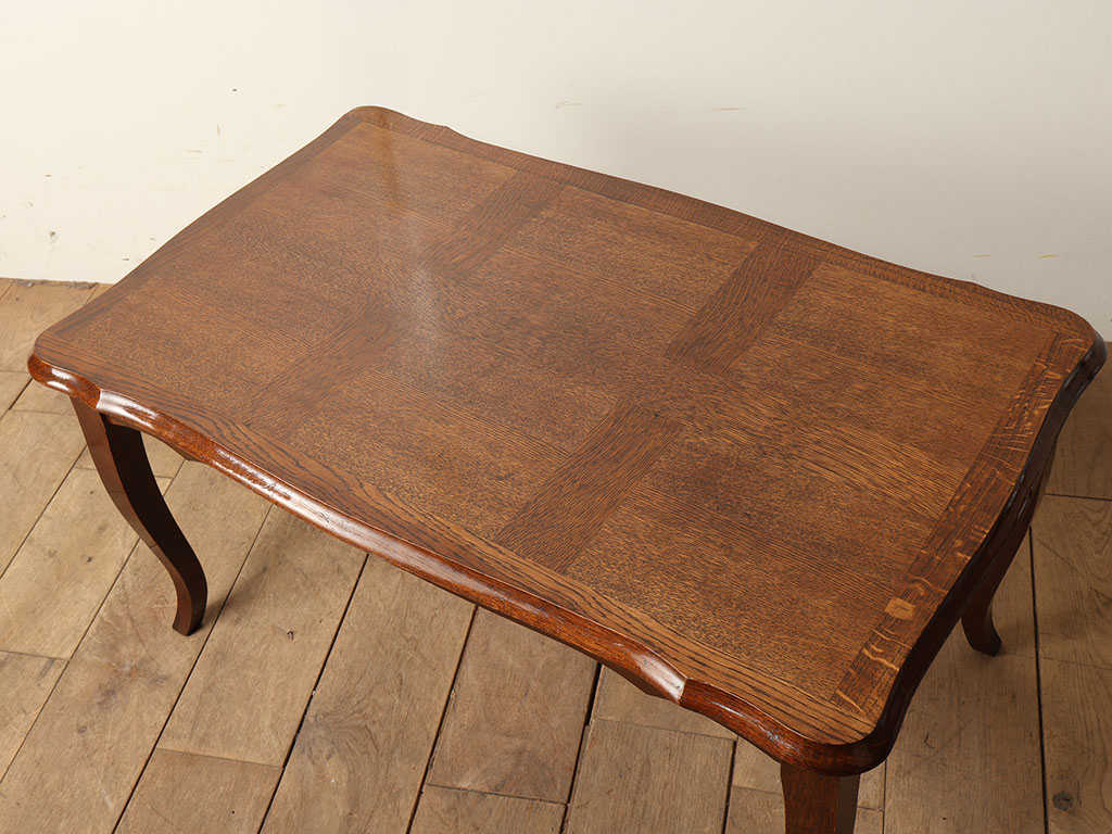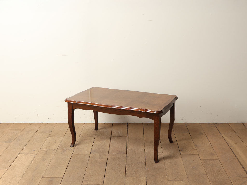 フランス家具の代名詞とも言えるカブリオールレッグが特徴のフレンチコーヒーテーブル。過度な装飾を抑えつつも、S字の曲線美が非常に洗練されており、空間に軽やかさと女性らしい気品を与えます。シンプルでいて圧迫感のないデザインのため、現代のお部屋にも馴染みやすいアイテムです。オーク材の落ち着いた色味の仕上がりであることも魅力のひとつです。