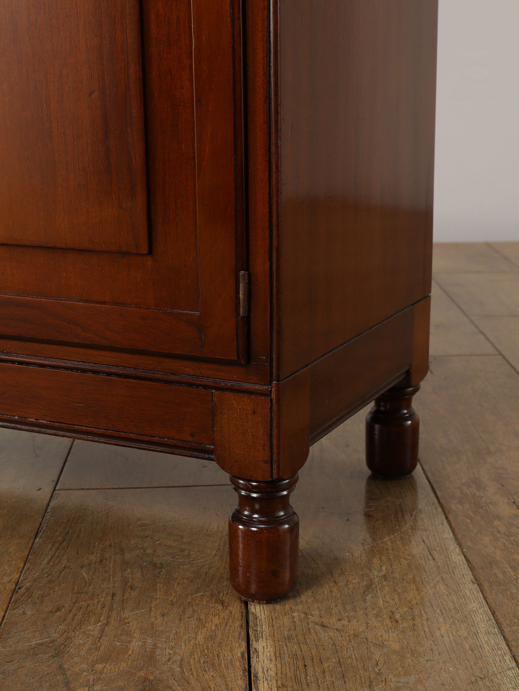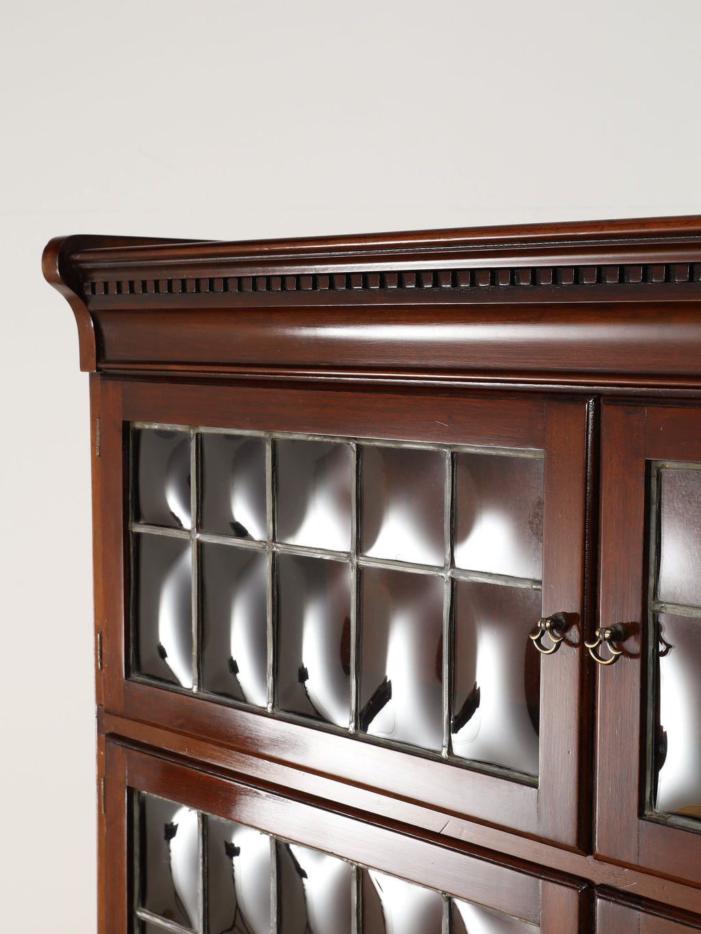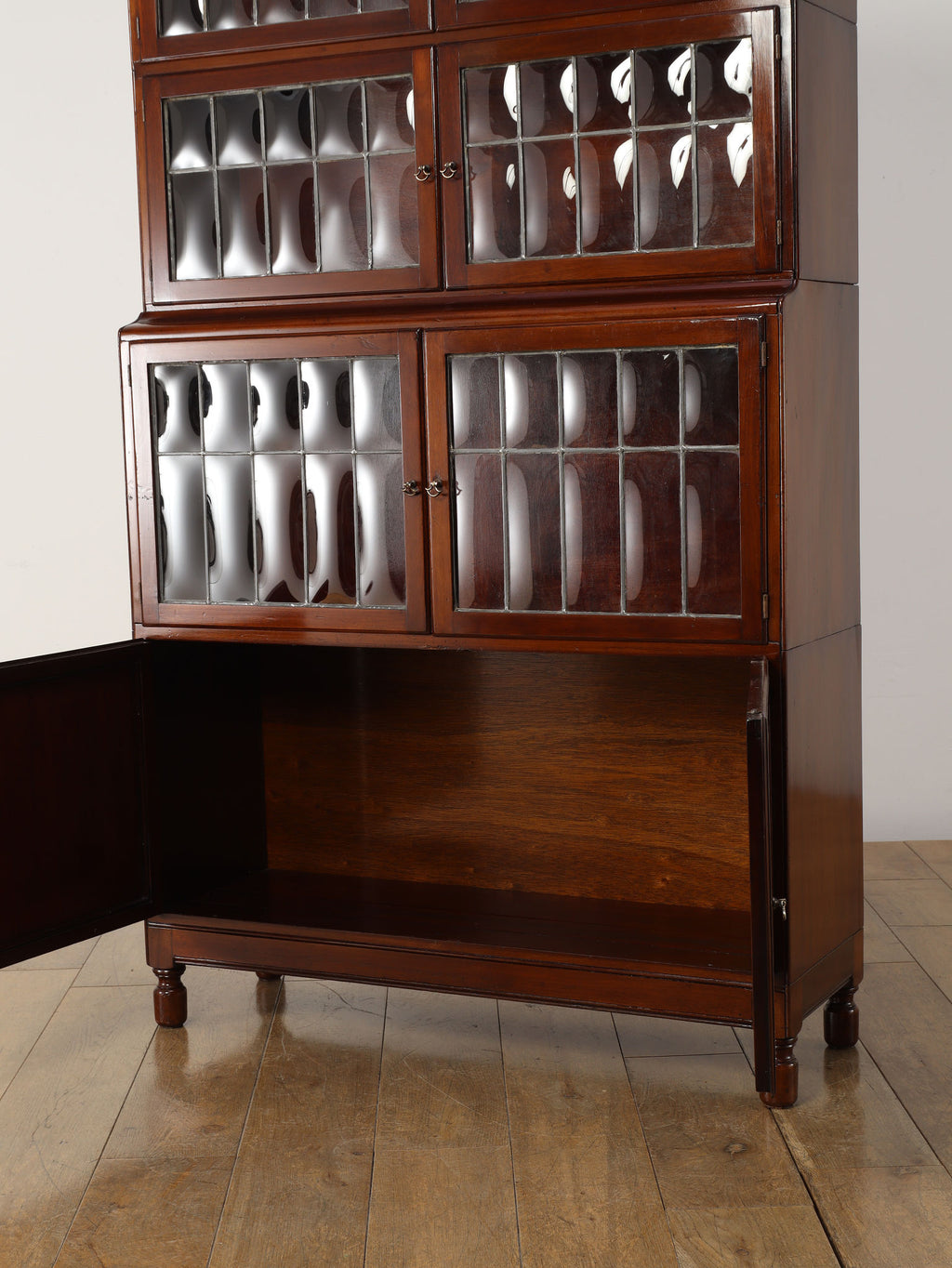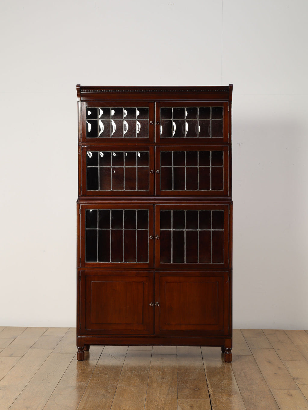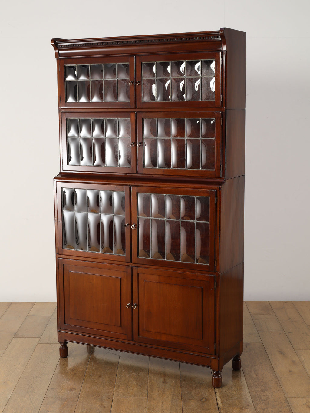 1920年代(推定)にイギリスで作られた、気品あふれる英国アンティークの本棚です。深みのあるマホガニー材は、100年の歳月を経て、現代の家具には出せない独特の温かみと上品な質感を醸し出しています。装飾を抑えた直線的なシルエットと、美しい意匠のバブルグラスの戸が織りなすデザインは、格式高い書斎にはもちろん、モダンなリビングにも自然に調和します。幅900mmという程よいサイズ感ながら収納スペースも多く、抜群の機能性を誇るのも魅力です。