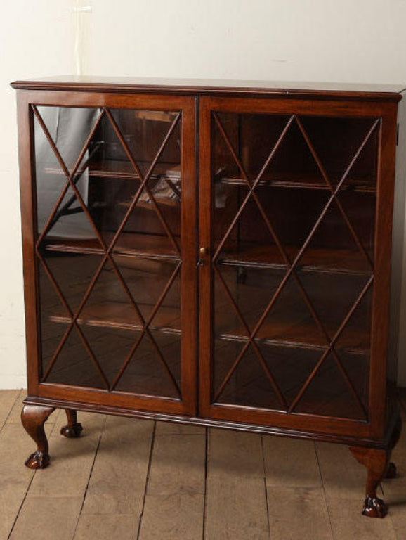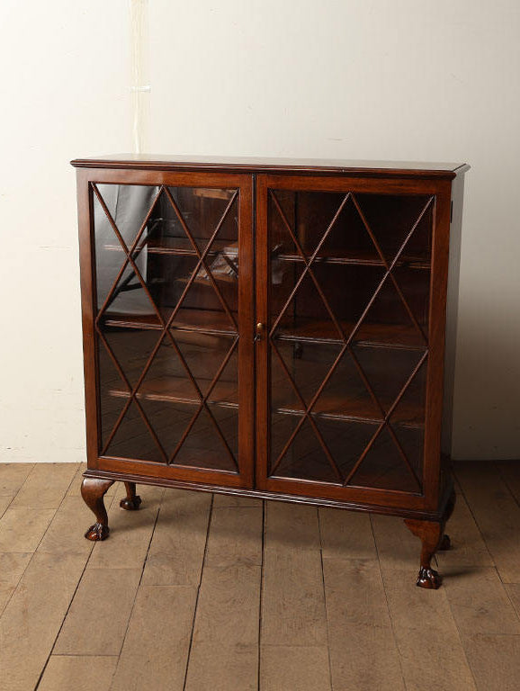 マホガニー材特有の深く美しい赤褐色が、空間に知的な温もりをもたらします。前面のひし形格子が放つ造形美は、大切な蔵書や食器などのコレクションをいっそう輝かせ、格調高いディスプレイを叶えてくれるでしょう。天板にランプや季節のお花を飾り、お気に入りの一冊を手に取る。慌ただしい日常を忘れさせるような、優雅な空間を演出する一生もののパートナーです。