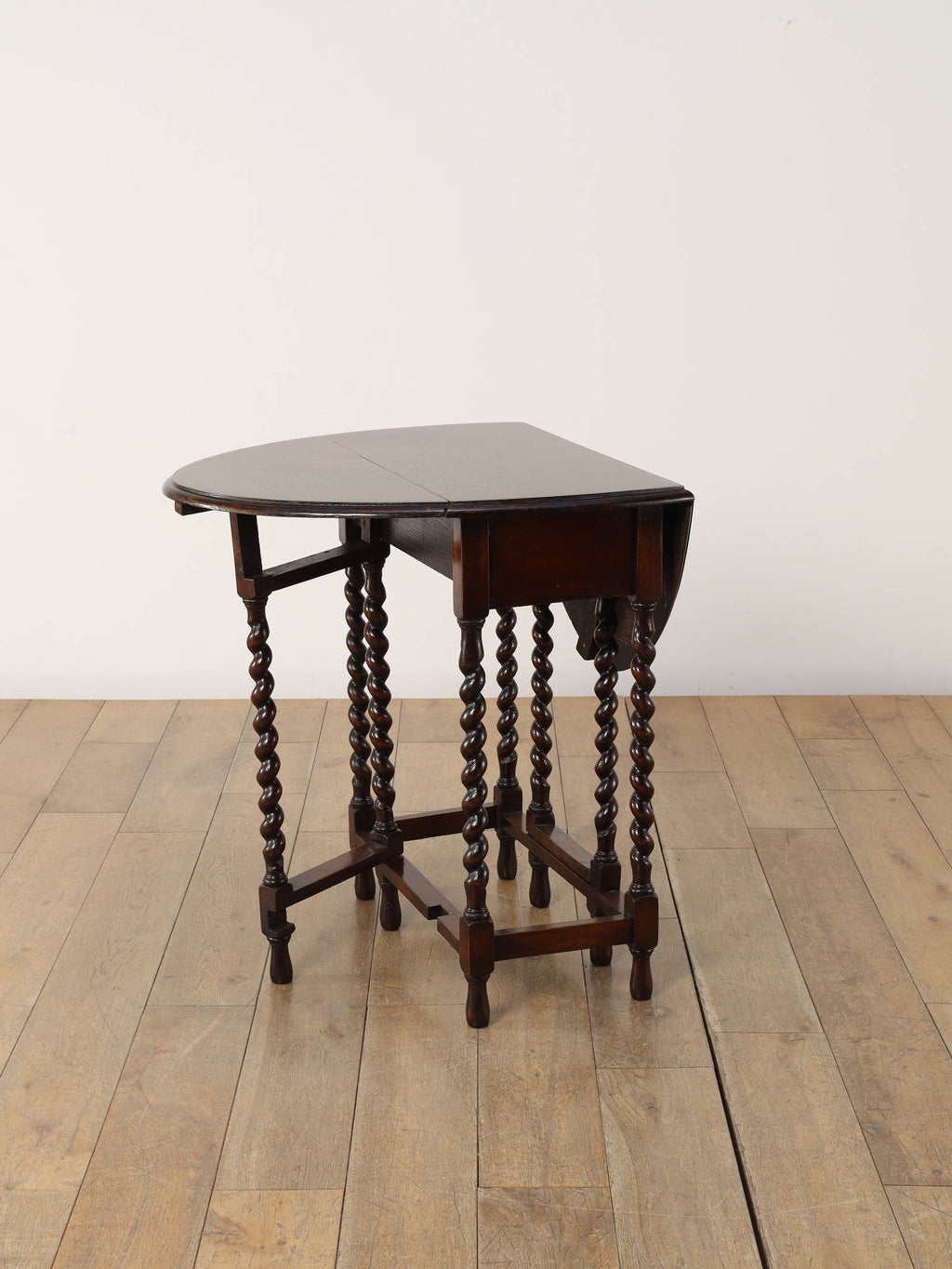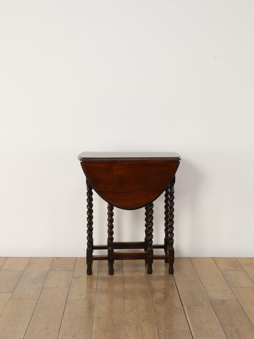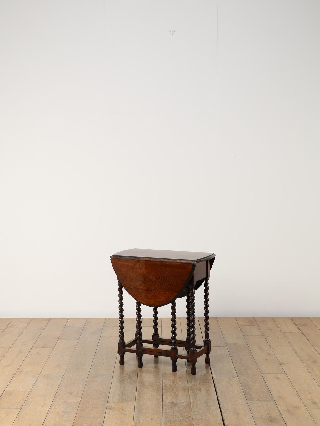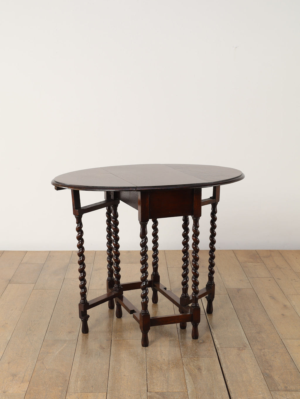 アンティークのダイニングの定番であるドローリーフテーブルと並び、現代の生活の中においても大変重宝するゲートレッグテーブル。左右の天板を折り畳むことができるバタフライスタイルのこちらのテーブルは、天板を支える脚部がゲート(門)のように可動することから、このように呼ばれます。小振りなサイズから、メインのダイニングとして使用可能な大きなサイズまで存在し、ご用途に合わせてお選びいただけます。両側を畳んでいる際は壁付けにしてコンソールテーブル代わりにもなり、常に適したスタイルで空間でご使用いただけることでしょう。ティーテーブル、デスク、作業台等、用途は多岐に渡り、万能なゲートレッグテーブルは現代の住環境において活躍の場が多い一台です。