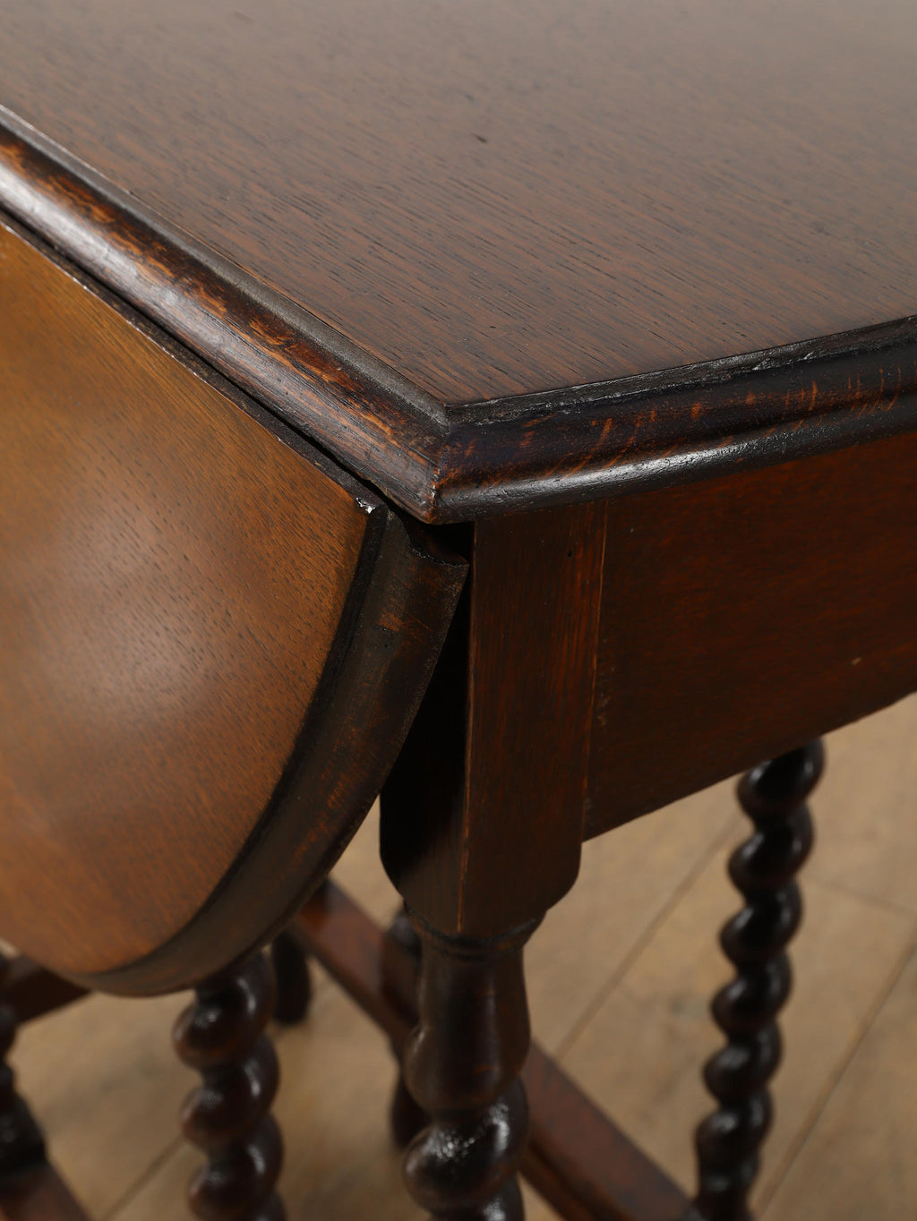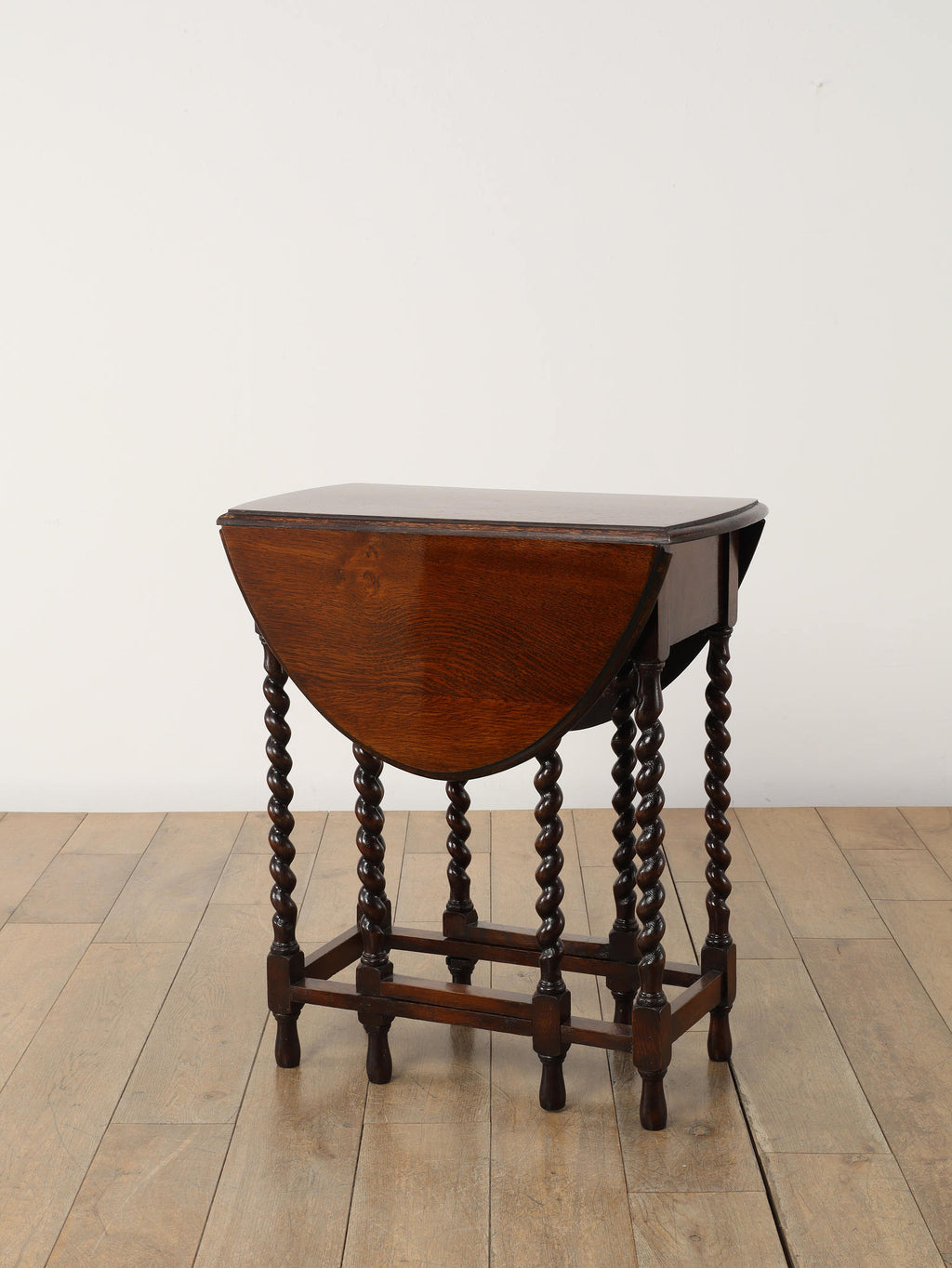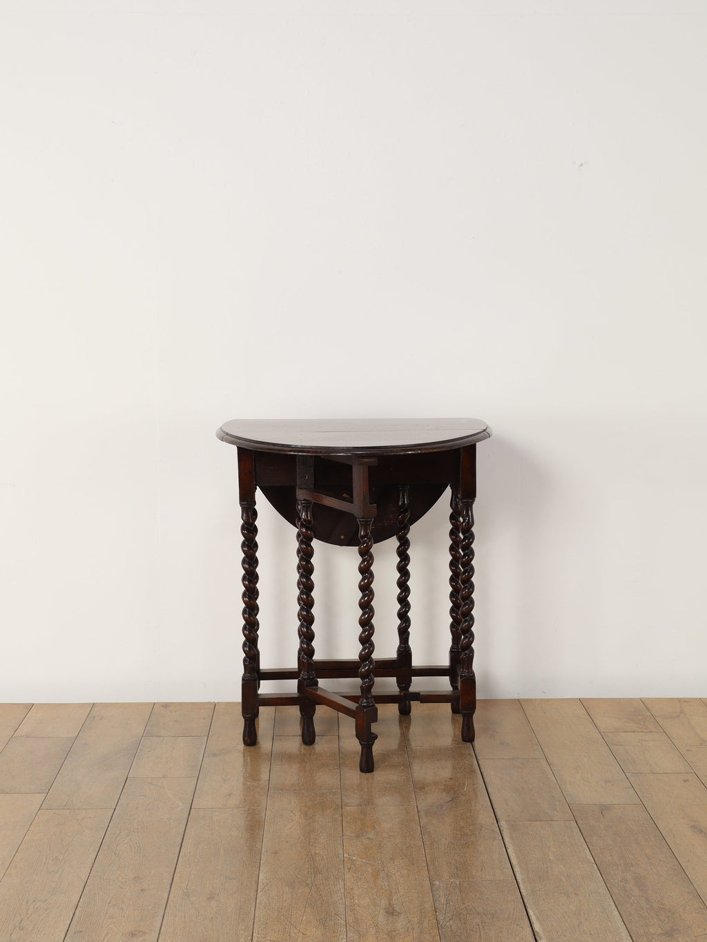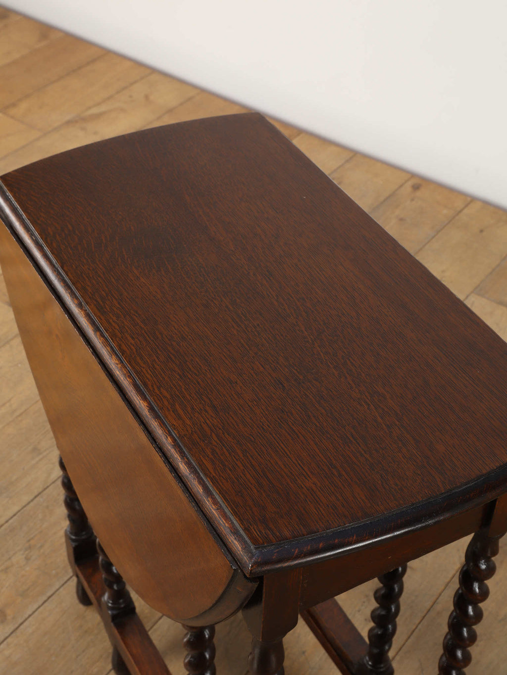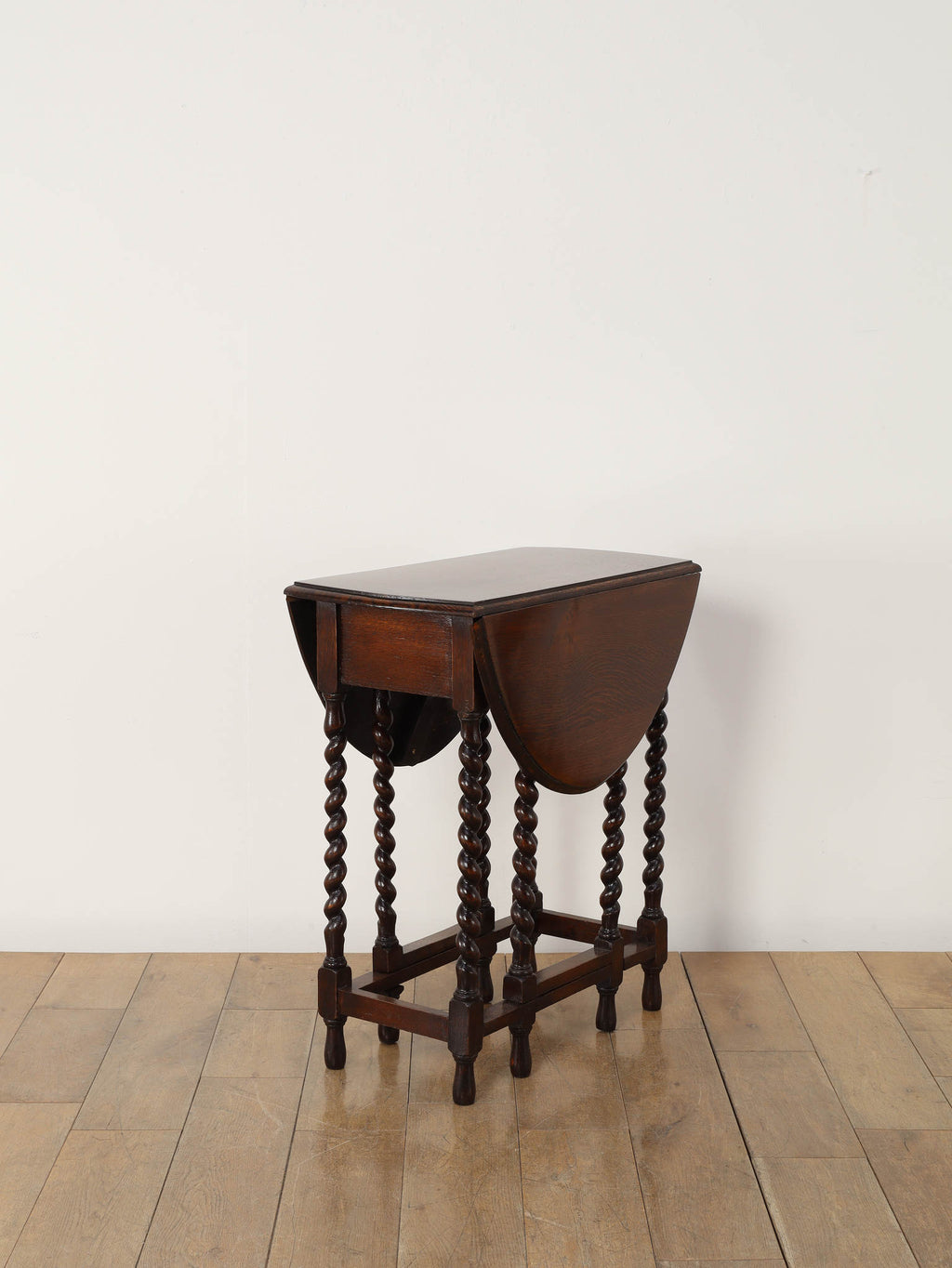アンティークのダイニングの定番であるドローリーフテーブルと並び、現代の生活の中においても大変重宝するゲートレッグテーブル。左右の天板を折り畳むことができるバタフライスタイルのこちらのテーブルは、天板を支える脚部がゲート(門)のように可動することから、このように呼ばれます。小振りなサイズから、メインのダイニングとして使用可能な大きなサイズまで存在し、ご用途に合わせてお選びいただけます。両側を畳んでいる際は壁付けにしてコンソールテーブル代わりにもなり、常に適したスタイルで空間でご使用いただけることでしょう。ティーテーブル、デスク、作業台等、用途は多岐に渡り、万能なゲートレッグテーブルは現代の住環境において活躍の場が多い一台です。