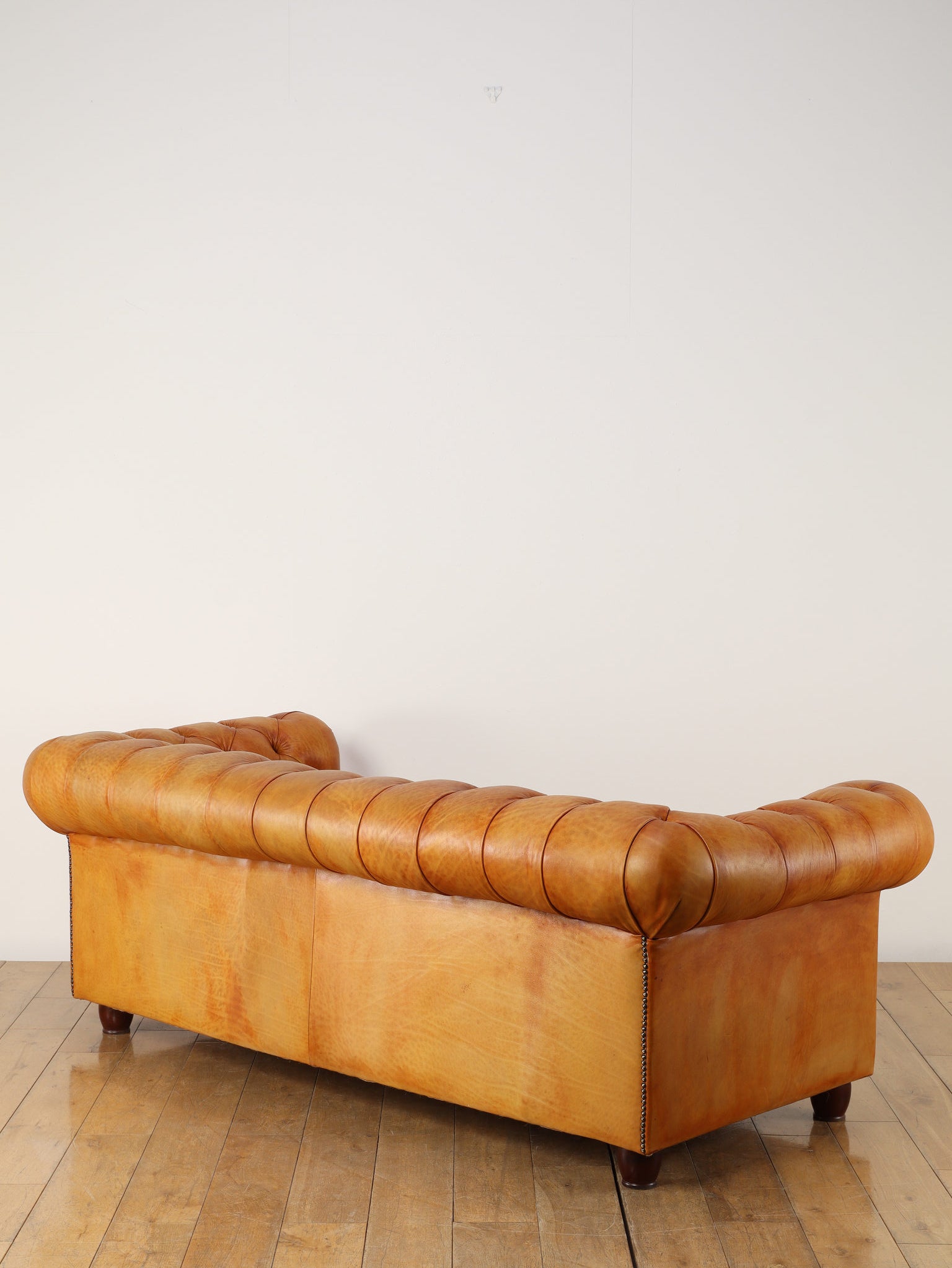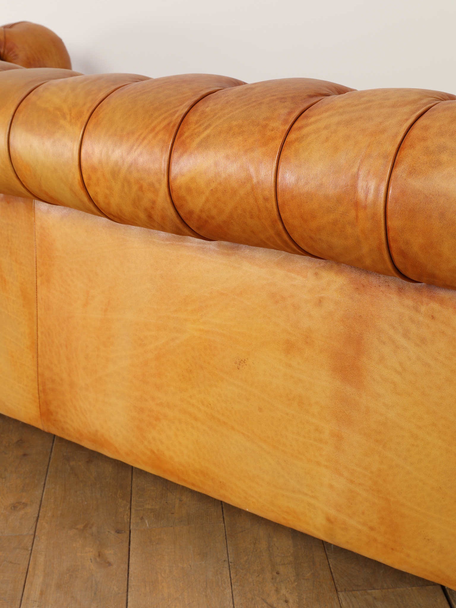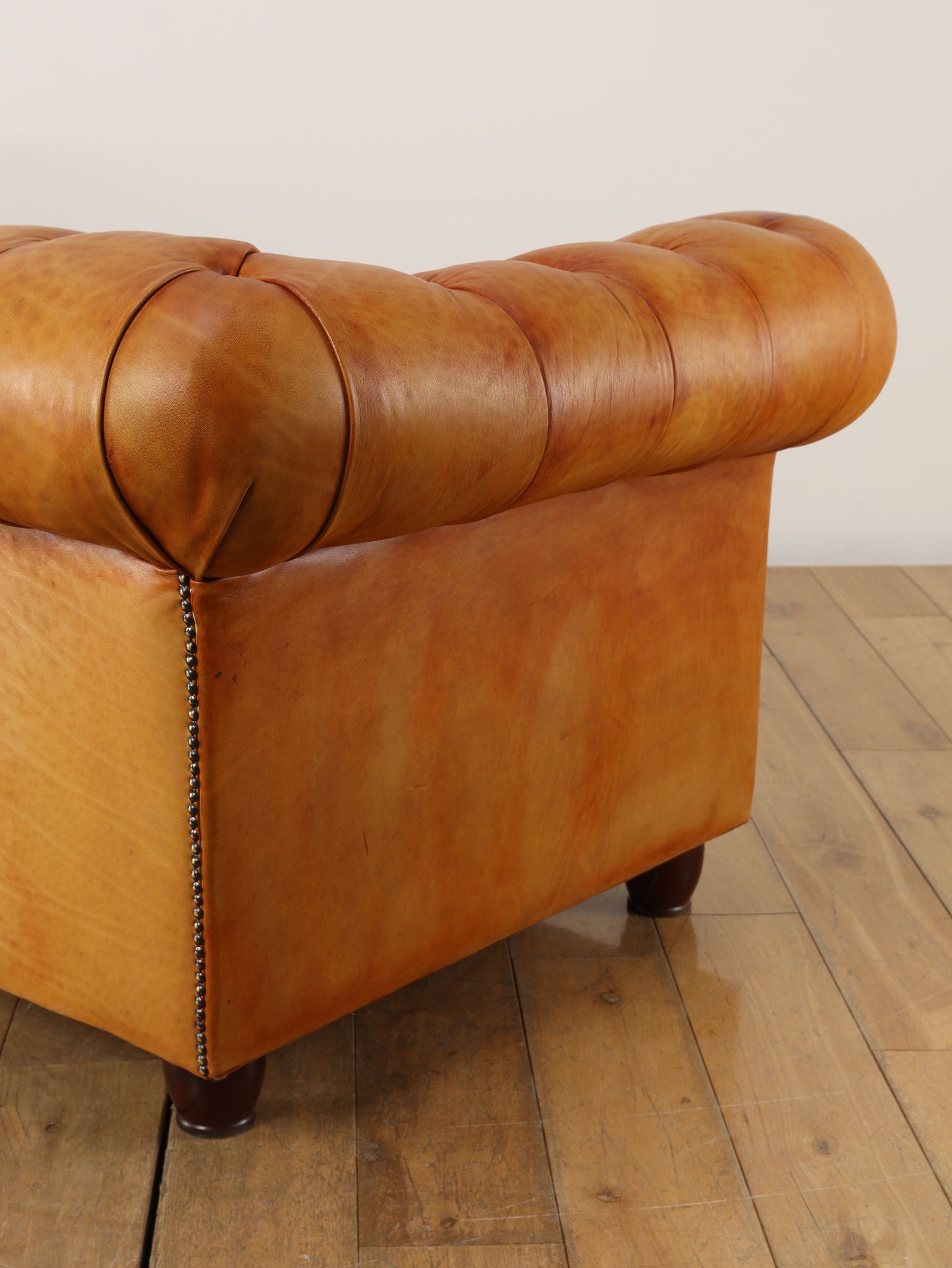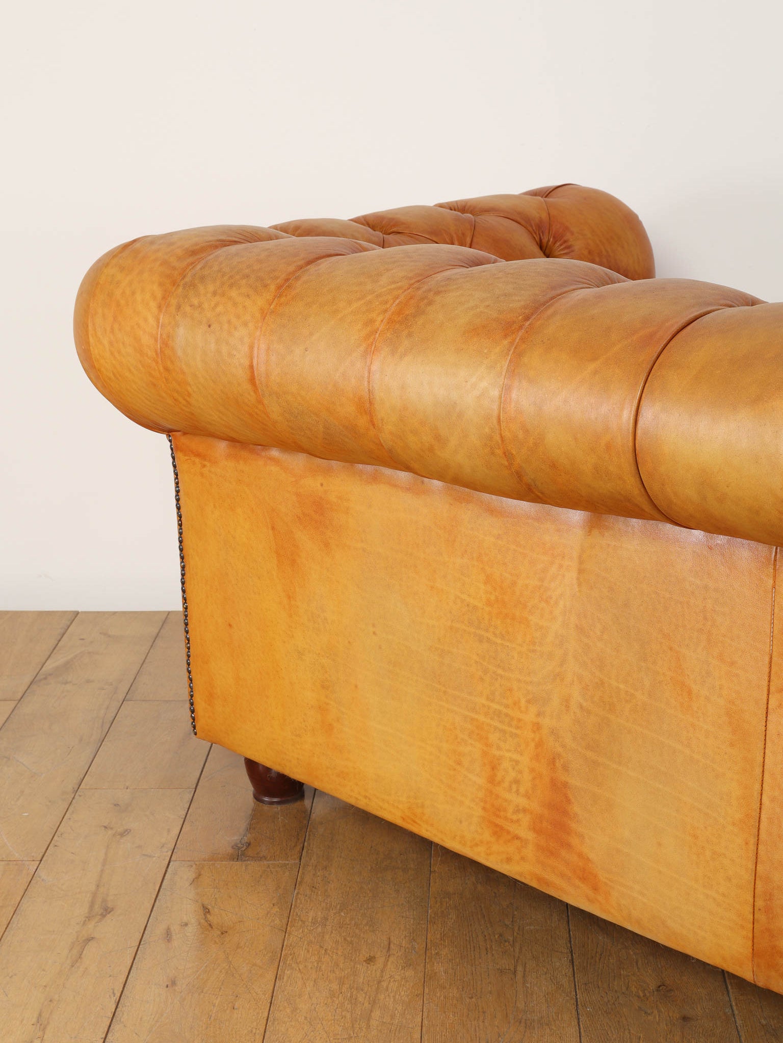 重厚感と気品あふれるデザインから、イギリスにおいて伝統的なジェントルマンズスタイルの象徴的なアイコンとして認知されているチェスターフィールドソファ。名前の由来は、このスタイルのソファを愛用していたチェスターフィールド伯爵にちなんでいます。こちらの商品は1970年頃のヴィンテージの個体を現地英国のクラフトマンが素材選びから選定し、鍛錬に仕上げたヴィンテージフレーム、ニューレザーの本物の1品です。垢のブナ材を使用した堅牢なフレームに、経年変化をイメージしながら、本革を選定しました。背面、シート部のボタン締めは圧巻であり、熟練職人による手作業の証が伺えます。タイムレスな魅力を持つこの商品は、伝統的なインテリアはもちろんのこと、モダンな現代シーンにも素晴らしいコントラストを生み出すでしょう。カラーはマスタードになります。