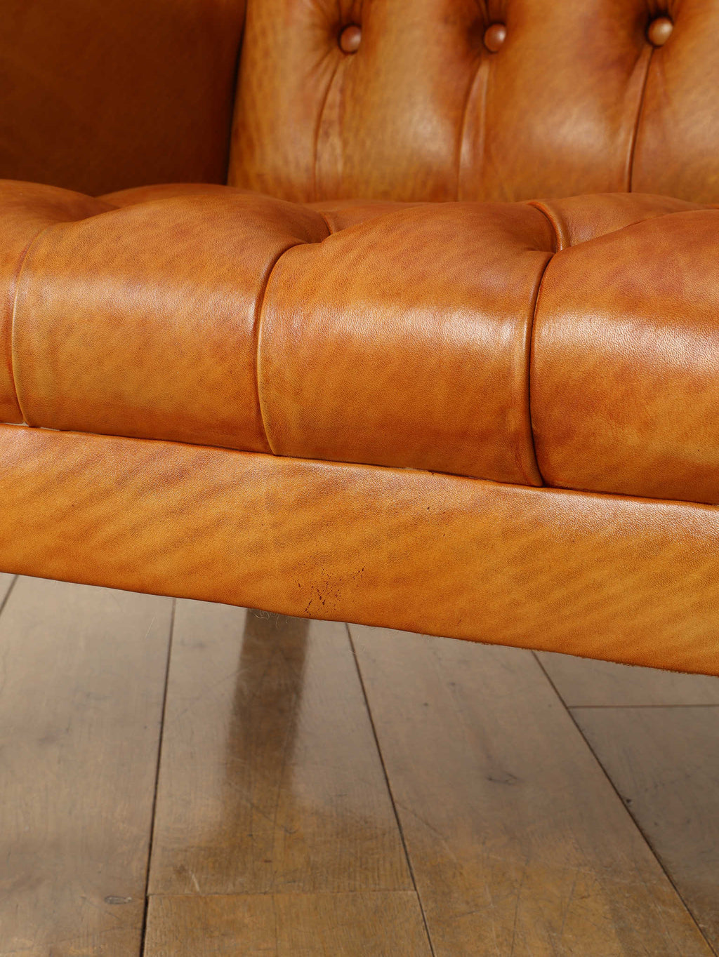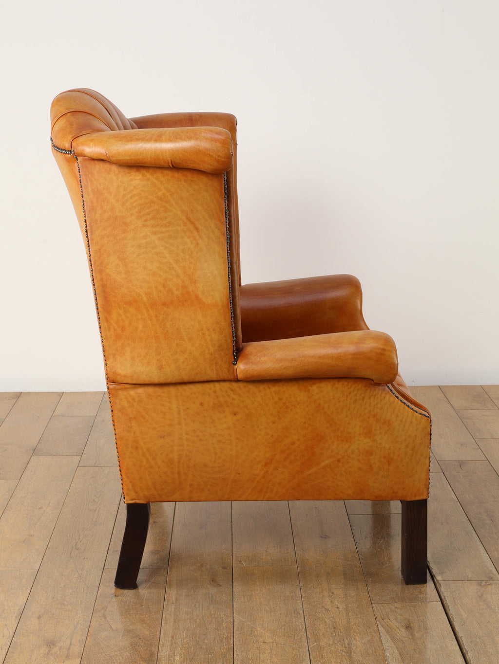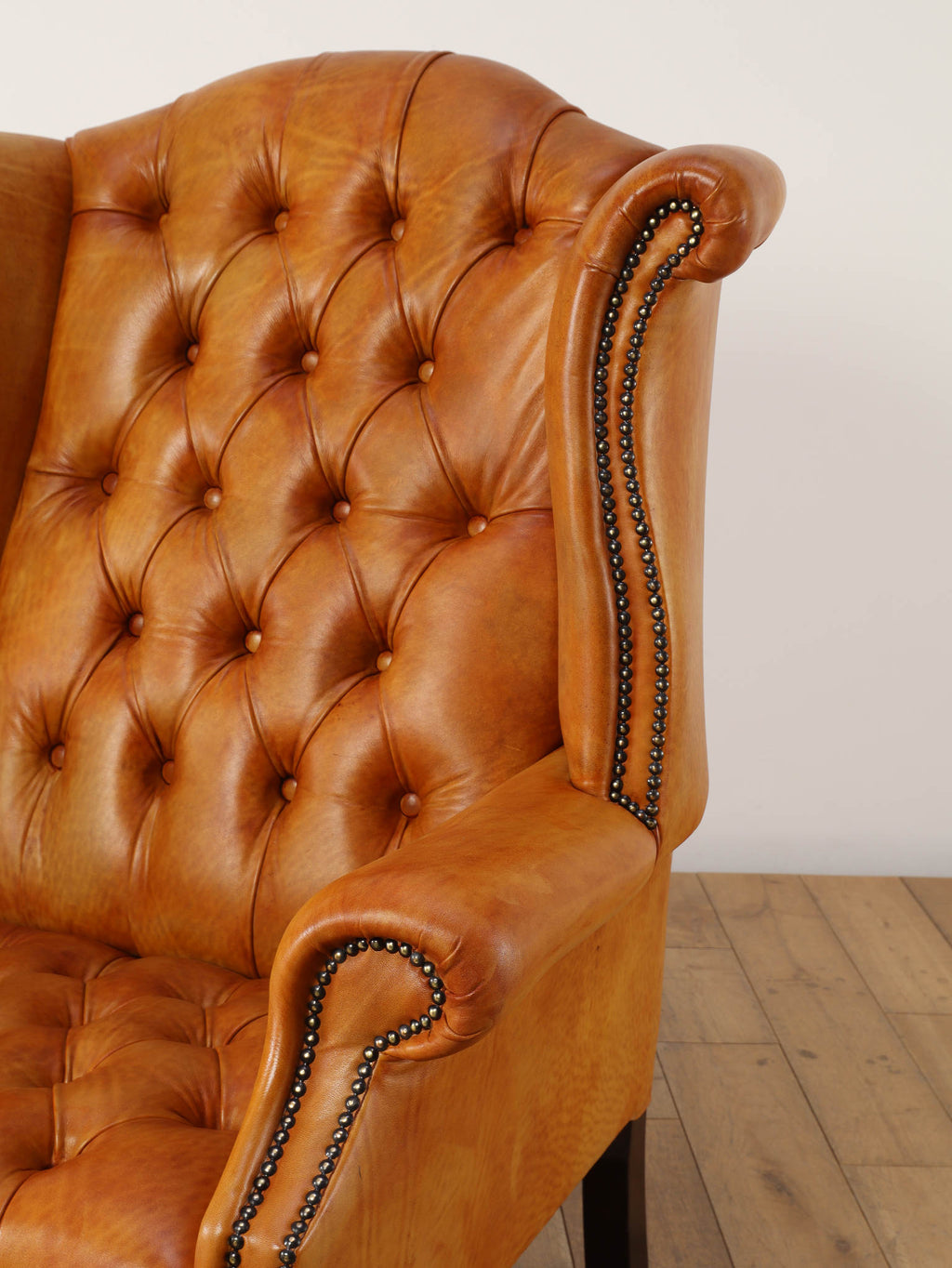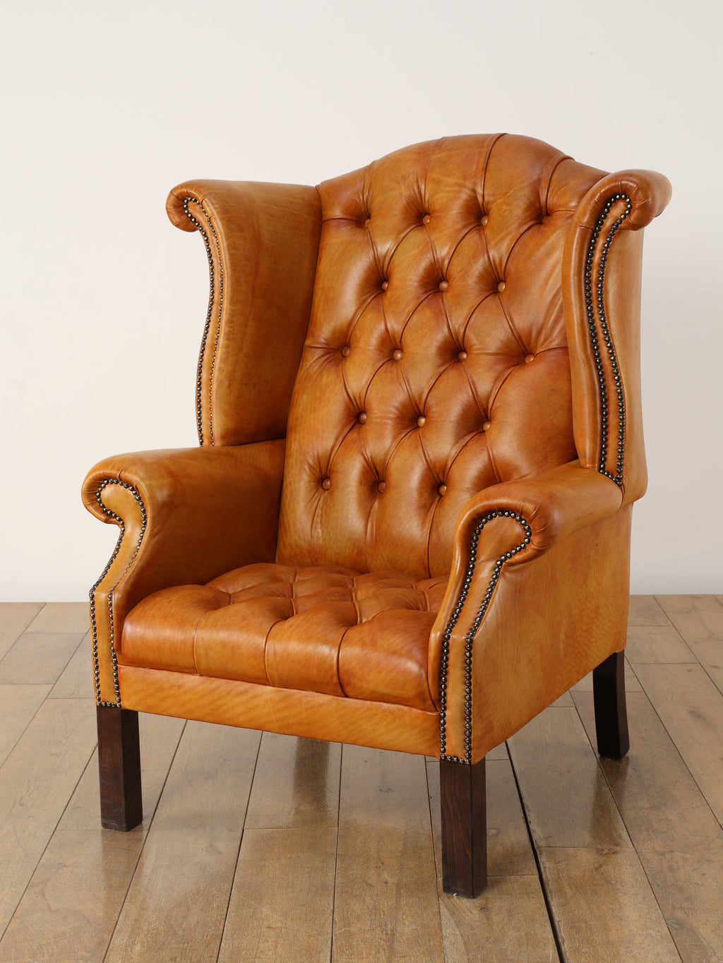 重厚感と気品あふれるデザインから、イギリスにおいて伝統的なジェントルマンズスタイルの象徴的なアイコンとして認知されているウイングチェア。暖炉のそばで紳士たちが座していた頃からの歴史を持つ、格式高いウィングバックスタイルです。頭部までしっかりと支え、座る人を優雅に包み込みます。こちらの商品は1970年頃のヴィンテージの個体を現地英国のクラフトマンが素材選びから選定し、鍛錬に仕上げたヴィンテージフレーム、ニューレザーの本物の1品です。垢のブナ材を使用した堅牢なフレームに、経年変化をイメージしながら、本革を選定しました。背面、シート部のボタン締めは圧巻であり、熟練職人による手作業の証が伺えます。タイムレスな魅力を持つこの商品は、伝統的なインテリアはもちろんのこと、モダンな現代シーンにも素晴らしいコントラストを生み出すでしょう。カラーはマスタードになります。※ハンドダイレザー仕上げの特性上、強くこすると色が落ち、色移りする可能性があります。