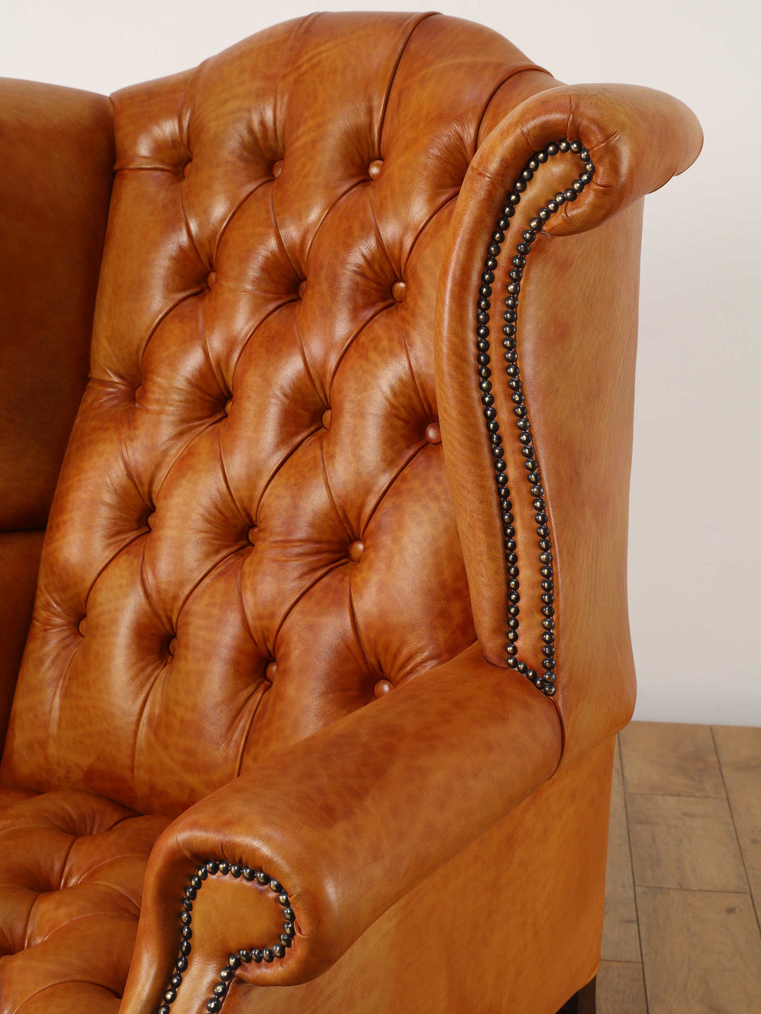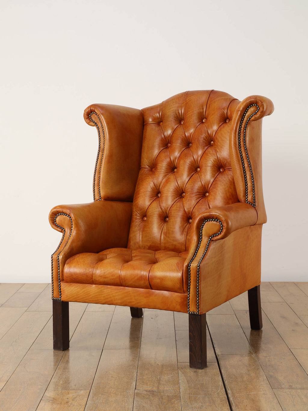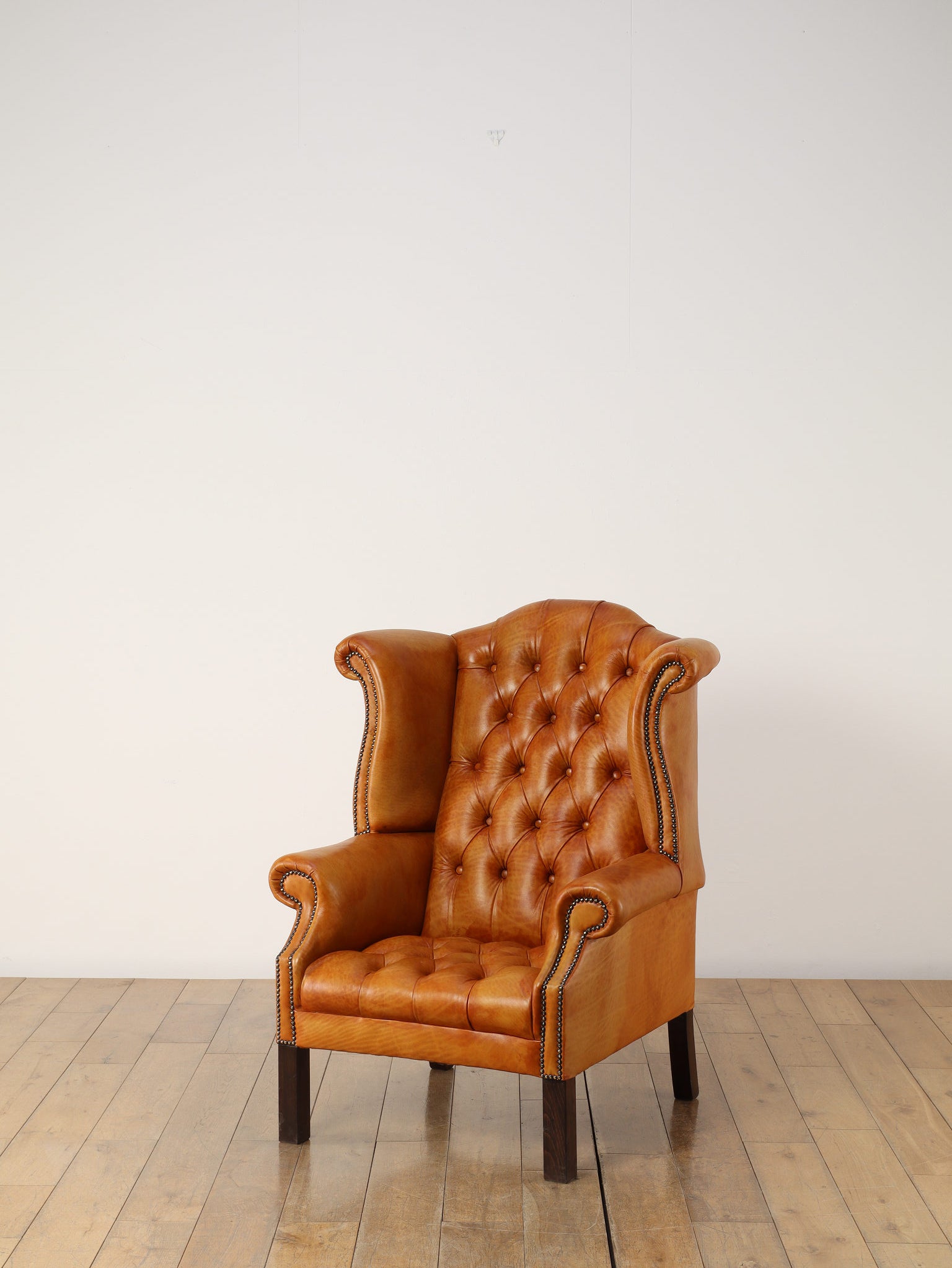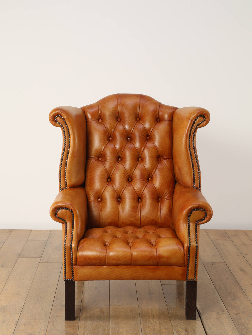 重厚感と気品あふれるデザインから、イギリスにおいて伝統的なジェントルマンズスタイルの象徴的なアイコンとして認知されているウイングチェア。暖炉のそばで紳士たちが座していた頃からの歴史を持つ、格式高いウィングバックスタイルです。頭部までしっかりと支え、座る人を優雅に包み込みます。こちらの商品は1970年頃のヴィンテージの個体を現地英国のクラフトマンが素材選びから選定し、鍛錬に仕上げたヴィンテージフレーム、ニューレザーの本物の1品です。垢のブナ材を使用した堅牢なフレームに、経年変化をイメージしながら、本革を選定しました。背面、シート部のボタン締めは圧巻であり、熟練職人による手作業の証が伺えます。タイムレスな魅力を持つこの商品は、伝統的なインテリアはもちろんのこと、モダンな現代シーンにも素晴らしいコントラストを生み出すでしょう。カラーはマスタードになります。