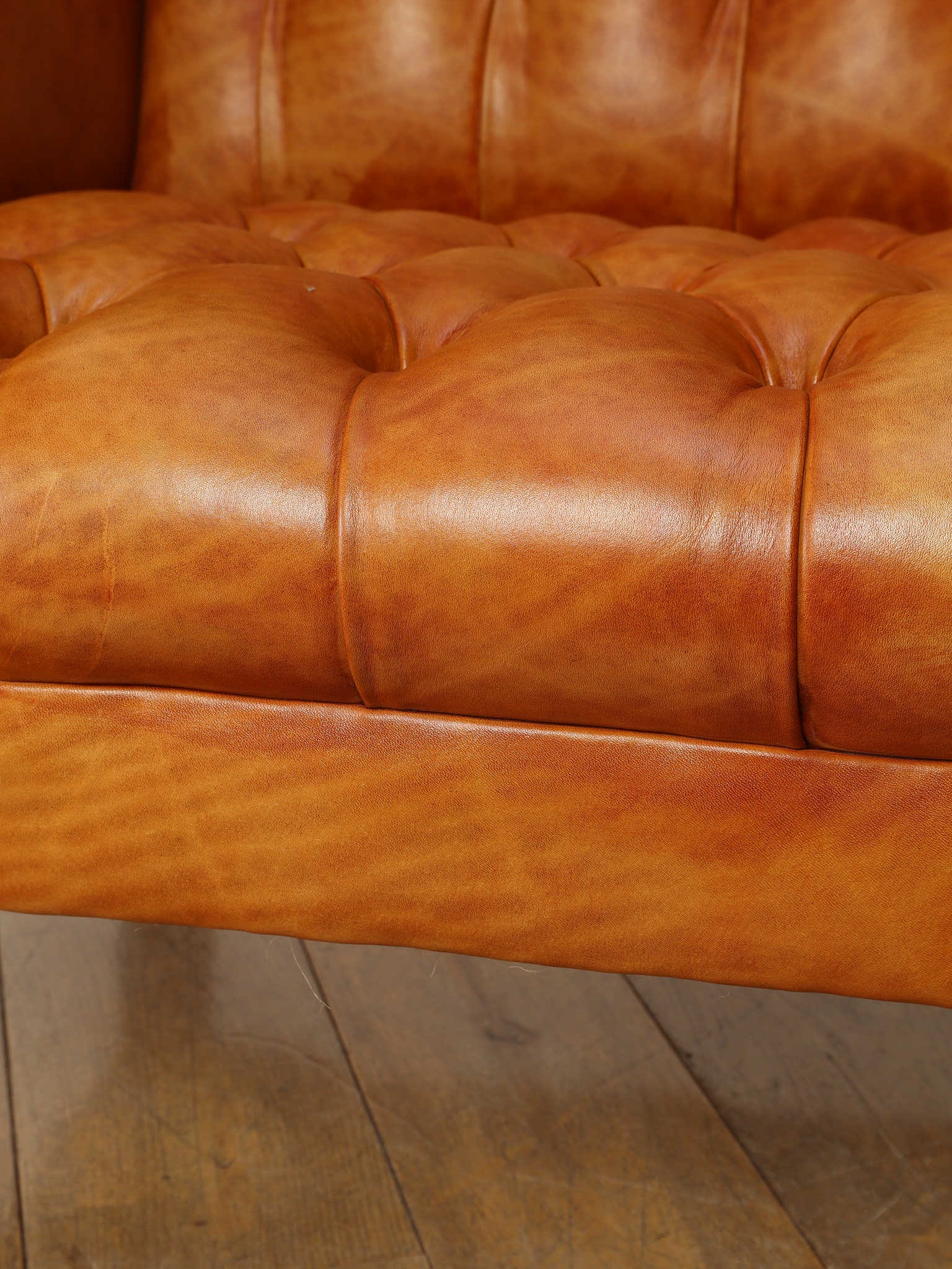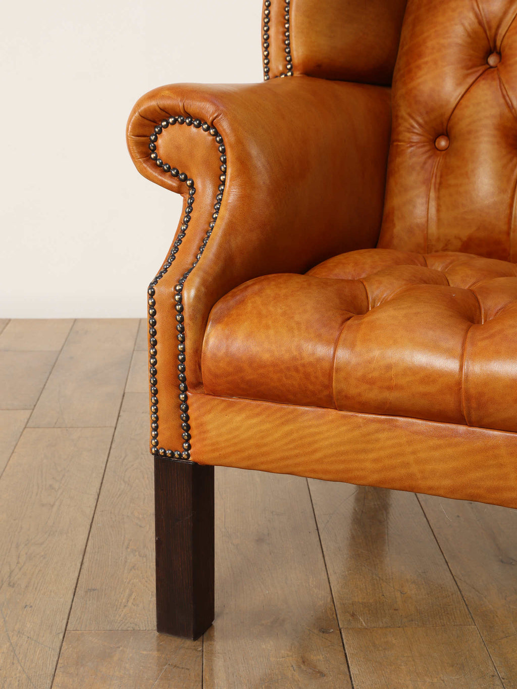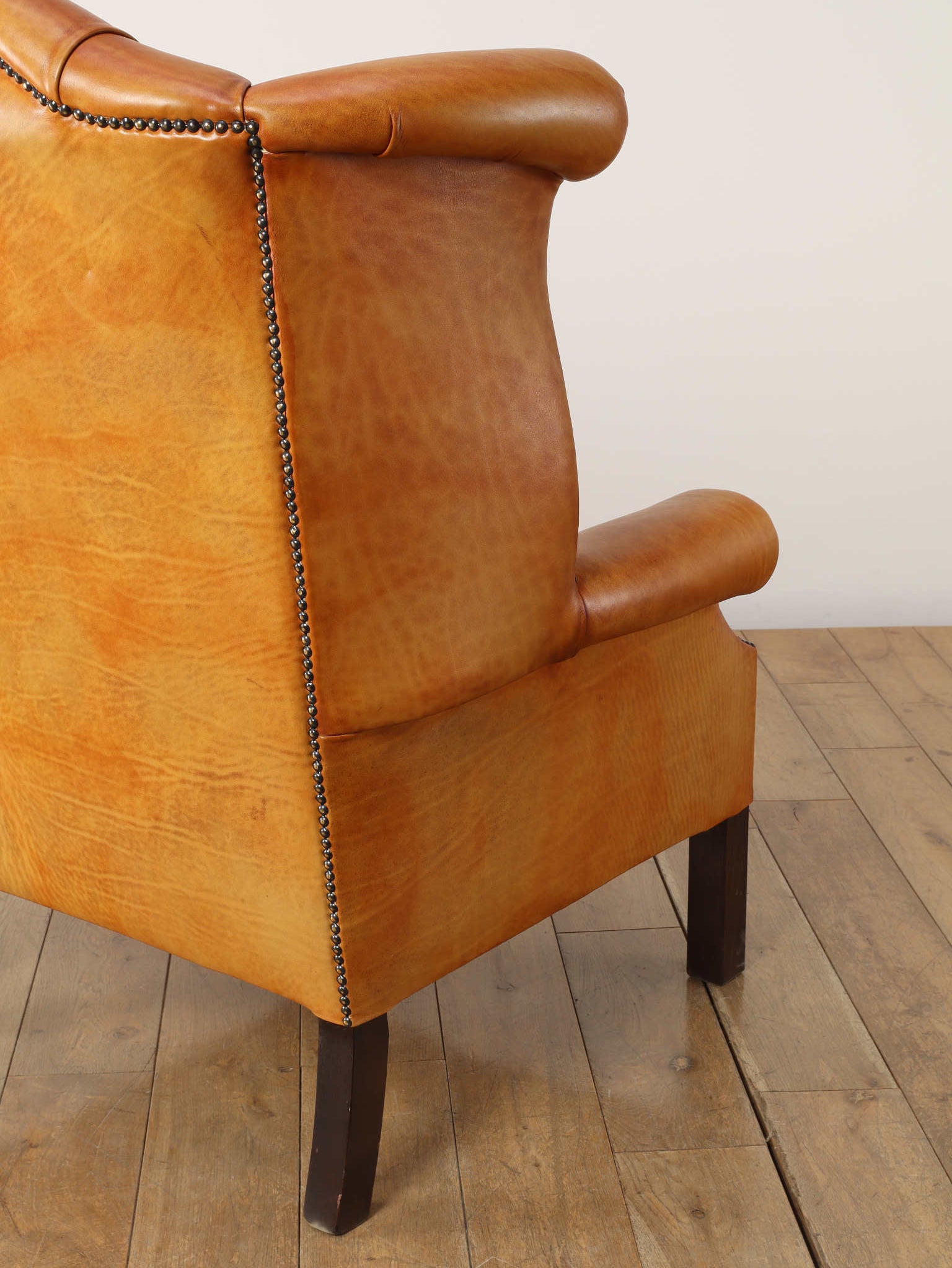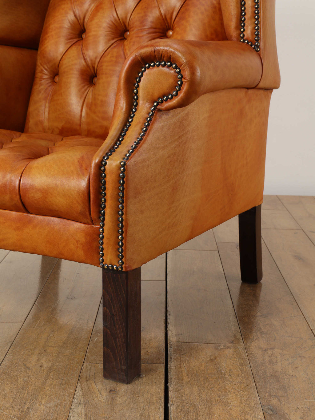 重厚感と気品あふれるデザインから、イギリスにおいて伝統的なジェントルマンズスタイルの象徴的なアイコンとして認知されているウイングチェア。暖炉のそばで紳士たちが座していた頃からの歴史を持つ、格式高いウィングバックスタイルです。頭部までしっかりと支え、座る人を優雅に包み込みます。こちらの商品は1970年頃のヴィンテージの個体を現地英国のクラフトマンが素材選びから選定し、鍛錬に仕上げたヴィンテージフレーム、ニューレザーの本物の1品です。垢のブナ材を使用した堅牢なフレームに、経年変化をイメージしながら、本革を選定しました。背面、シート部のボタン締めは圧巻であり、熟練職人による手作業の証が伺えます。タイムレスな魅力を持つこの商品は、伝統的なインテリアはもちろんのこと、モダンな現代シーンにも素晴らしいコントラストを生み出すでしょう。カラーはマスタードになります。
