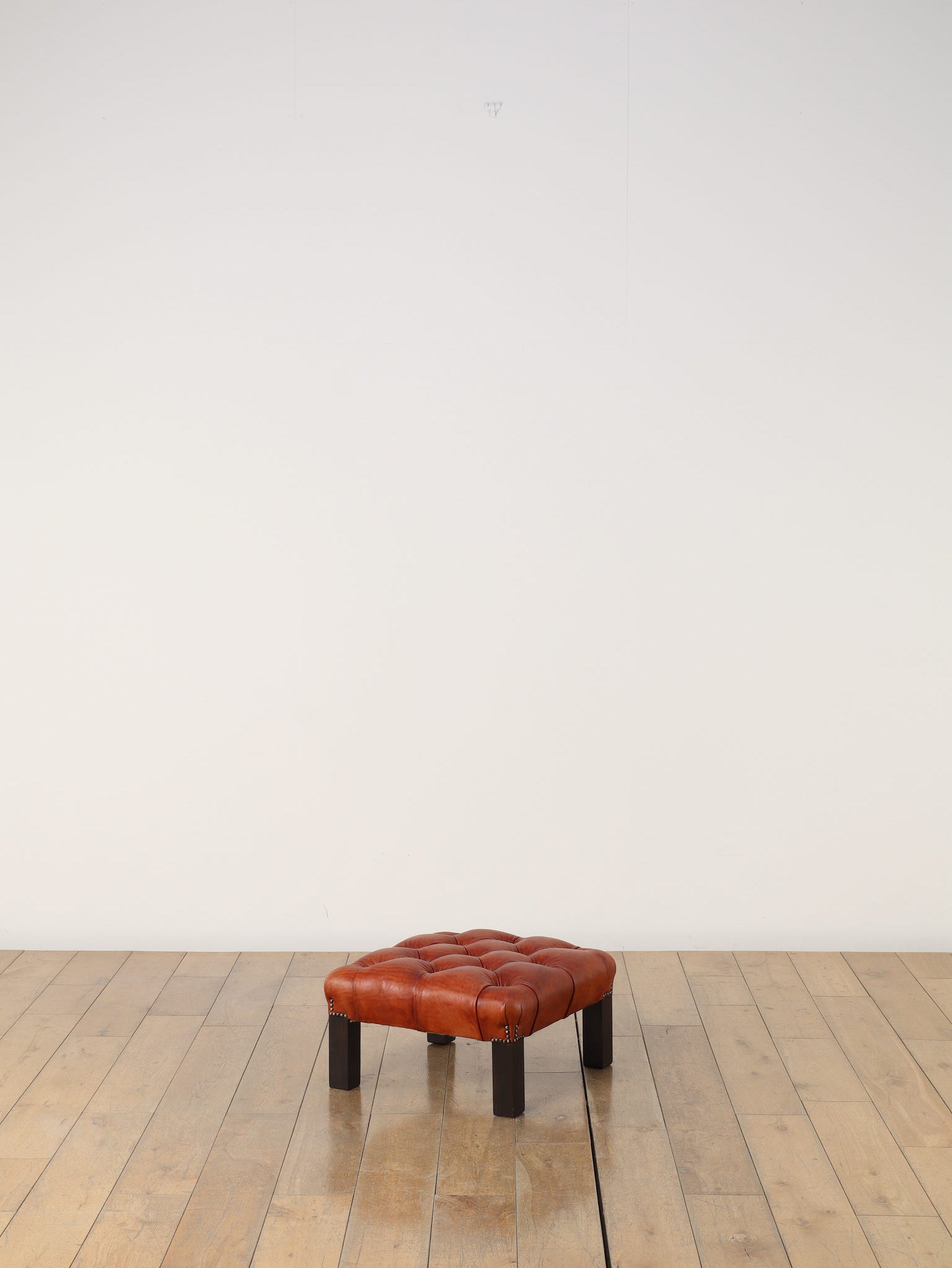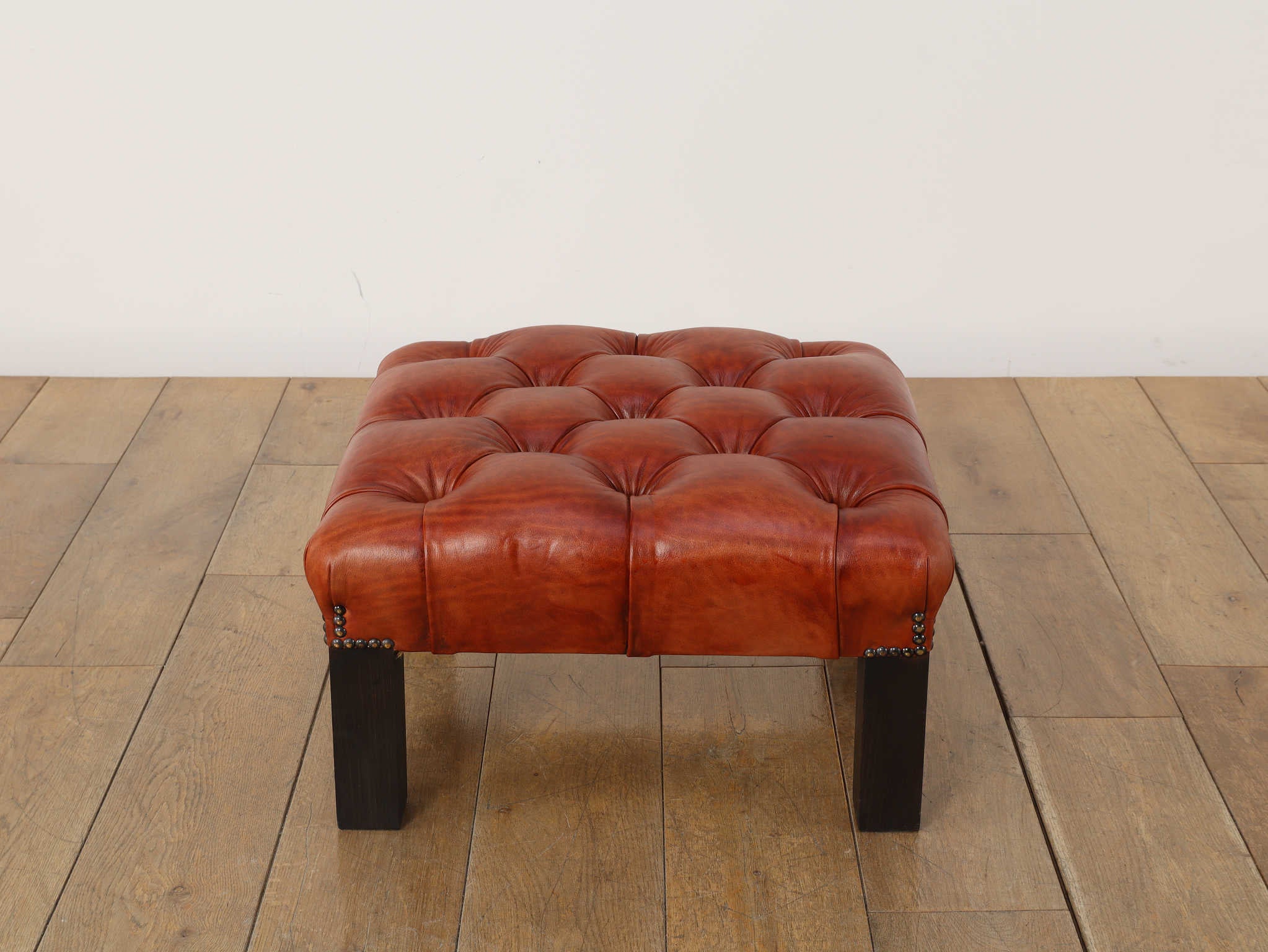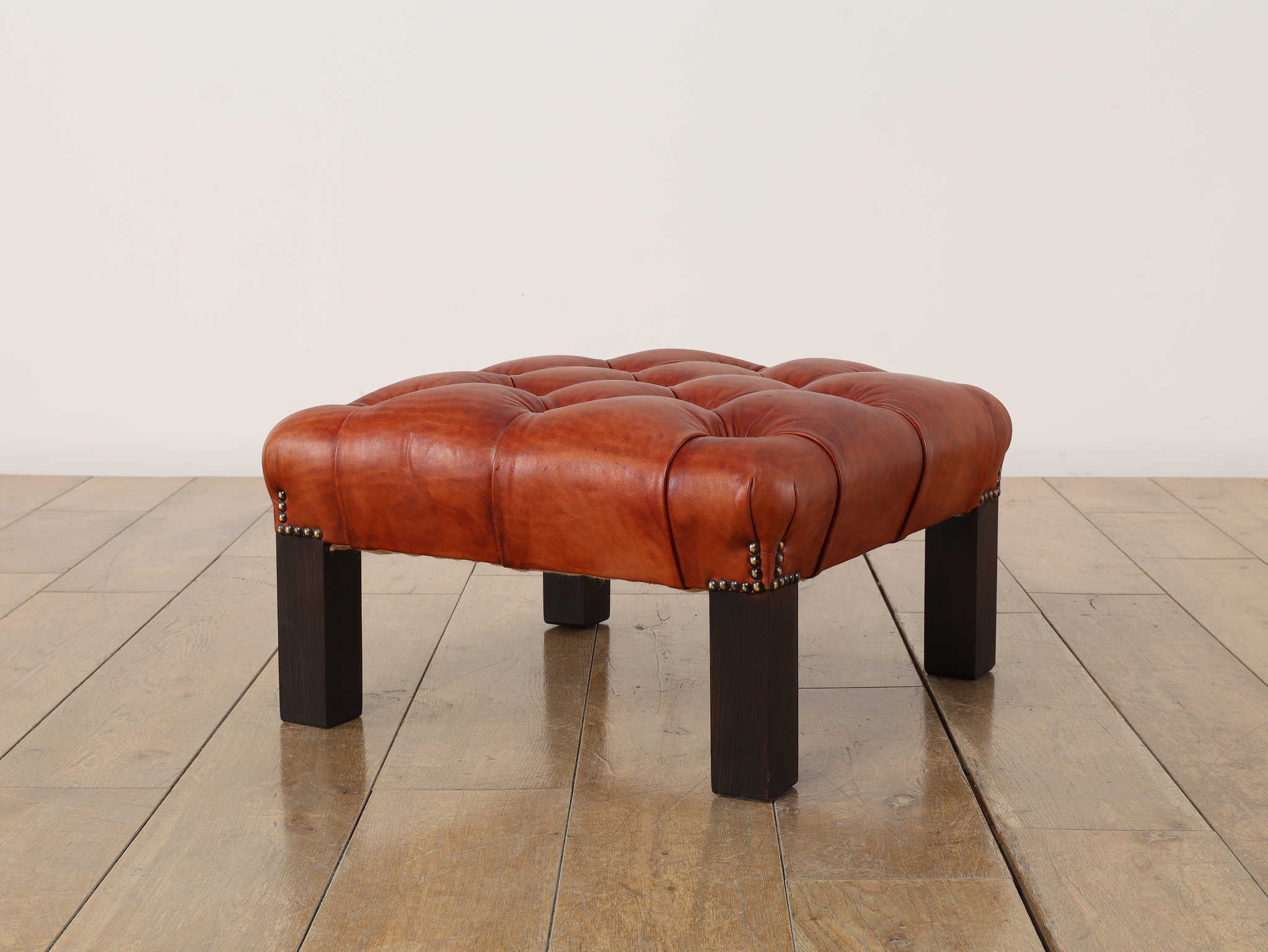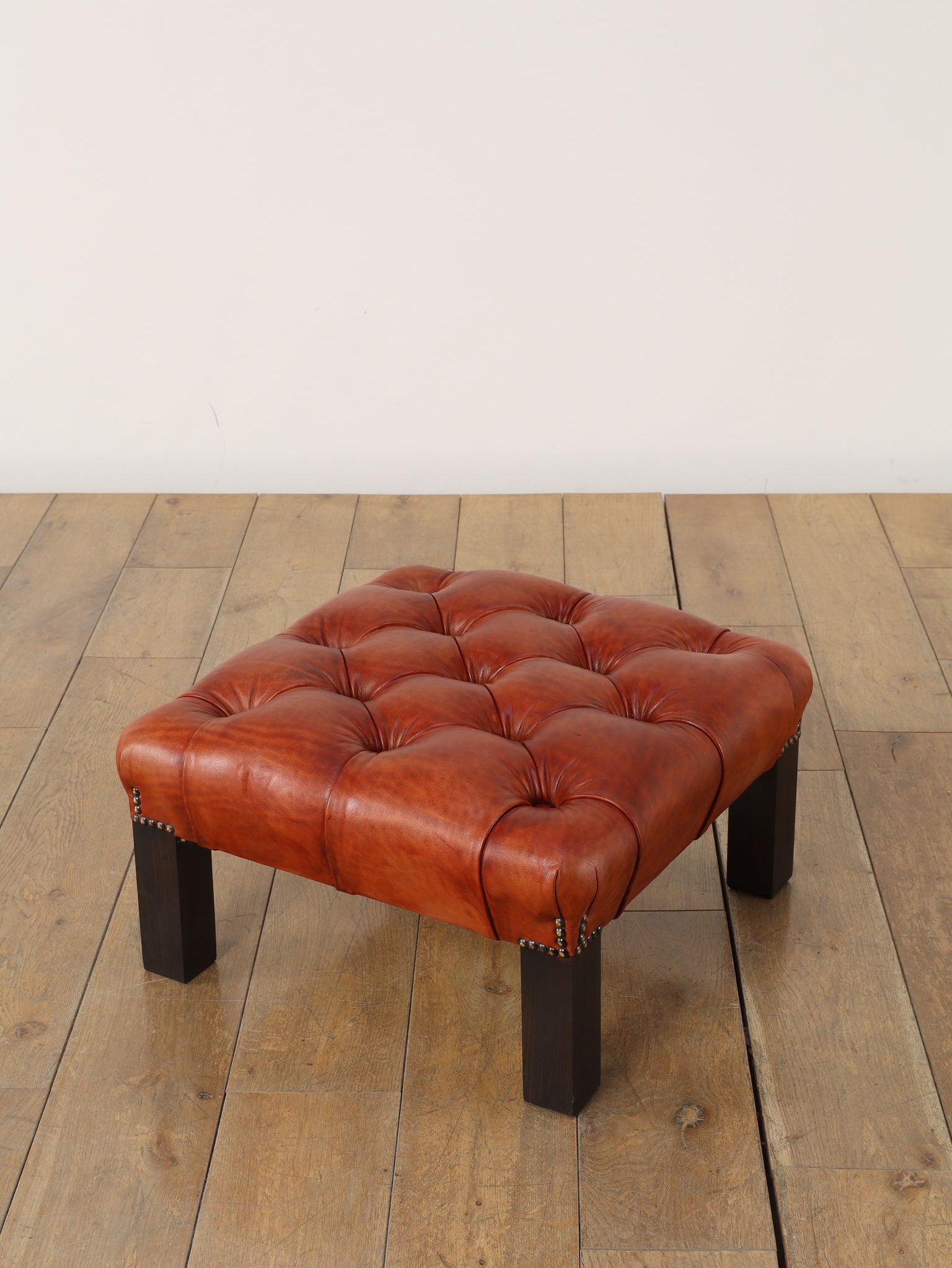 重厚感と気品あふれるデザインから、イギリスにおいて伝統的なジェントルマンズスタイルの象徴的なアイコンとして認知されているボタンシートのレザーチェア。こちらはフットスールですが、単体としても存在感を放ち、クラシックなインテリアアイテムとして重宝することでしょう。垢のブナ材を使用した堅牢なフレームに、経年変化をイメージしながら、本革を選定しました。シート部のボタン締めは圧巻であり、熟練職人による手作業の証が伺えます。タイムレスな魅力を持つこの商品は、伝統的なインテリアはもちろんのこと、モダンな現代シーンにも素晴らしいコントラストを生み出すでしょう。カラーはコニャックになります。※ハンドダイレザー仕上げの特性上、強くこすると色が落ち、色移りする可能性があります。