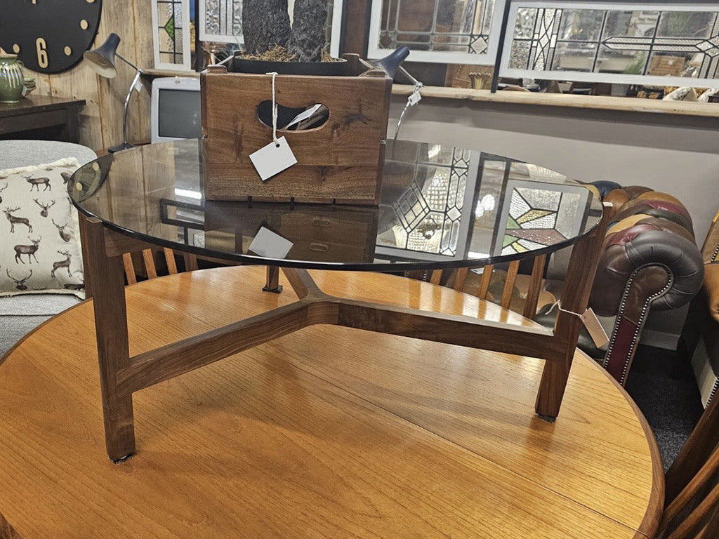 ミッドセンチュリー黄金期の1960年代(推定)英国で製作された珠玉の逸品です。約60年の歳月を経て深みを増したチーク材のフレームは、芸術的な曲線美を描き、現代のリビングにも洗練された温もりを添えてくれます。抜け感のあるグラストップは空間を広く見せ、お気に入りのラグを美しく引き立てます。時代を超えて愛される英国ヴィンテージならではの普遍的な佇まいをご堪能ください。