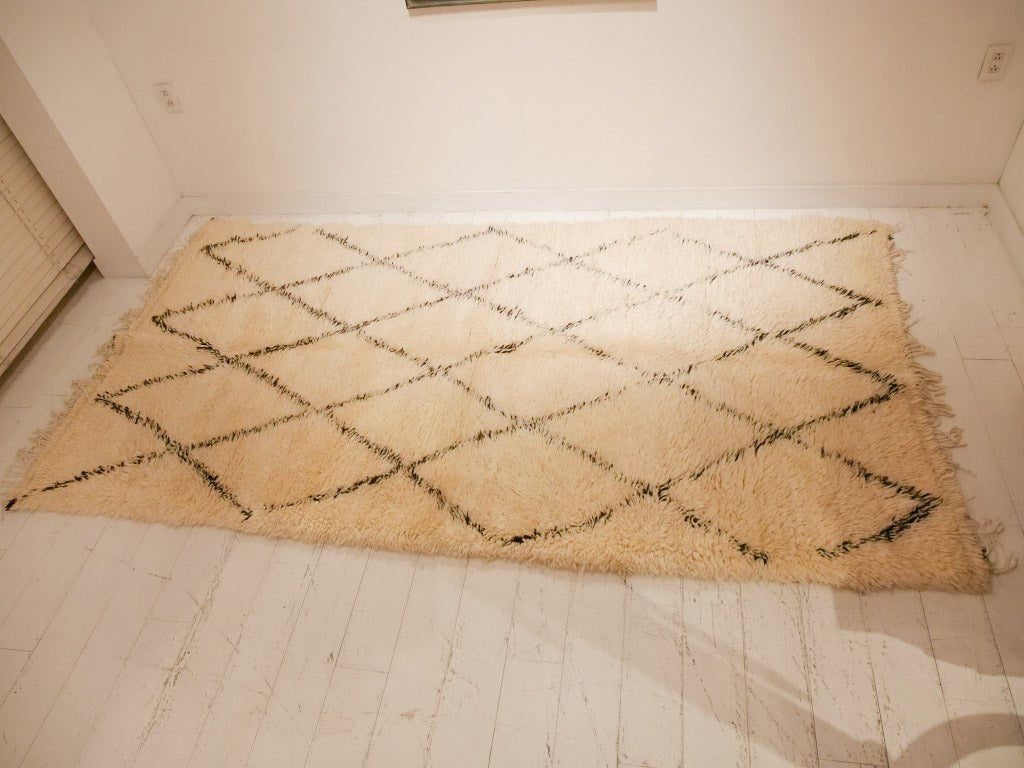 ベニワレンラグは、モロッコにあるアトラス山という山にしか生息していない世界最古といわれるその品種の羊毛を使用し、ベニワレン部族が作り上げたヴィンテージラグは染色をせず、生成り天然色の高級ウール100%のみを使用して織られています。