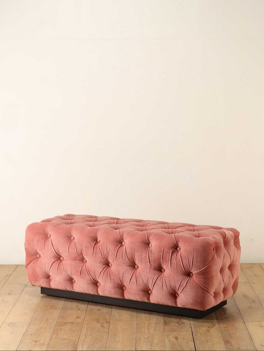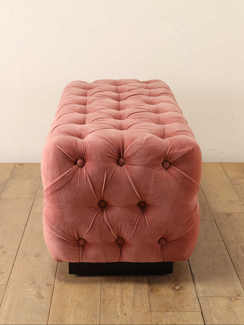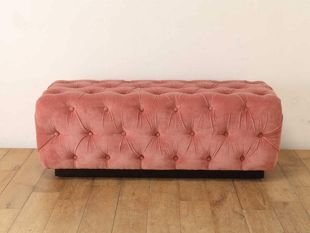 テキスタイルのロマンティシズムが漂う雰囲気とやさしい色合いが魅力のベッドエンドベンチ。ペールピンクのベルベット生地には、美しいタフティングが施され、空間にクラシカルでエレガントなアクセントを添えます。ベッドエンドだけでなく窓辺、玄関先など、さまざまなシーンでお使いいただけるアイテムです。上質な質感とデザインで、お部屋をさりげなく格上げしてくれます。